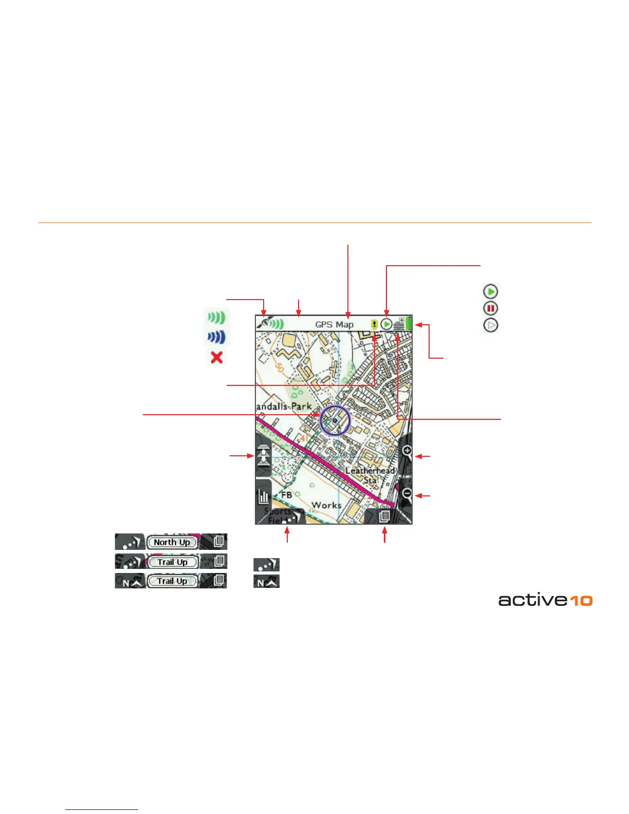 satmap Active 10 - iii. Map Screen Layout; Map Screen Elements