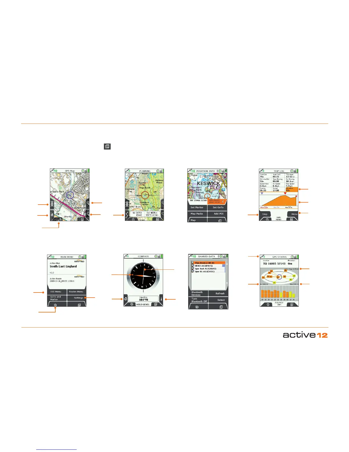 (Primary Screens ) to scroll through the primary screens which give you access to the main GPS features.