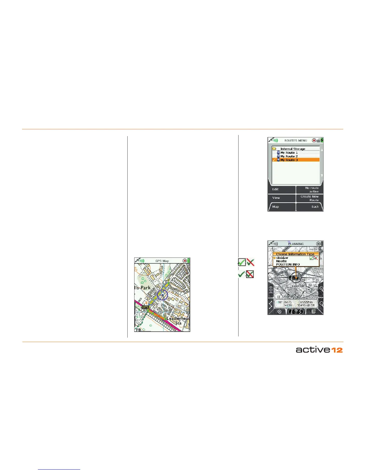 GPS MAP → PLANNING → ROUTES MENU via