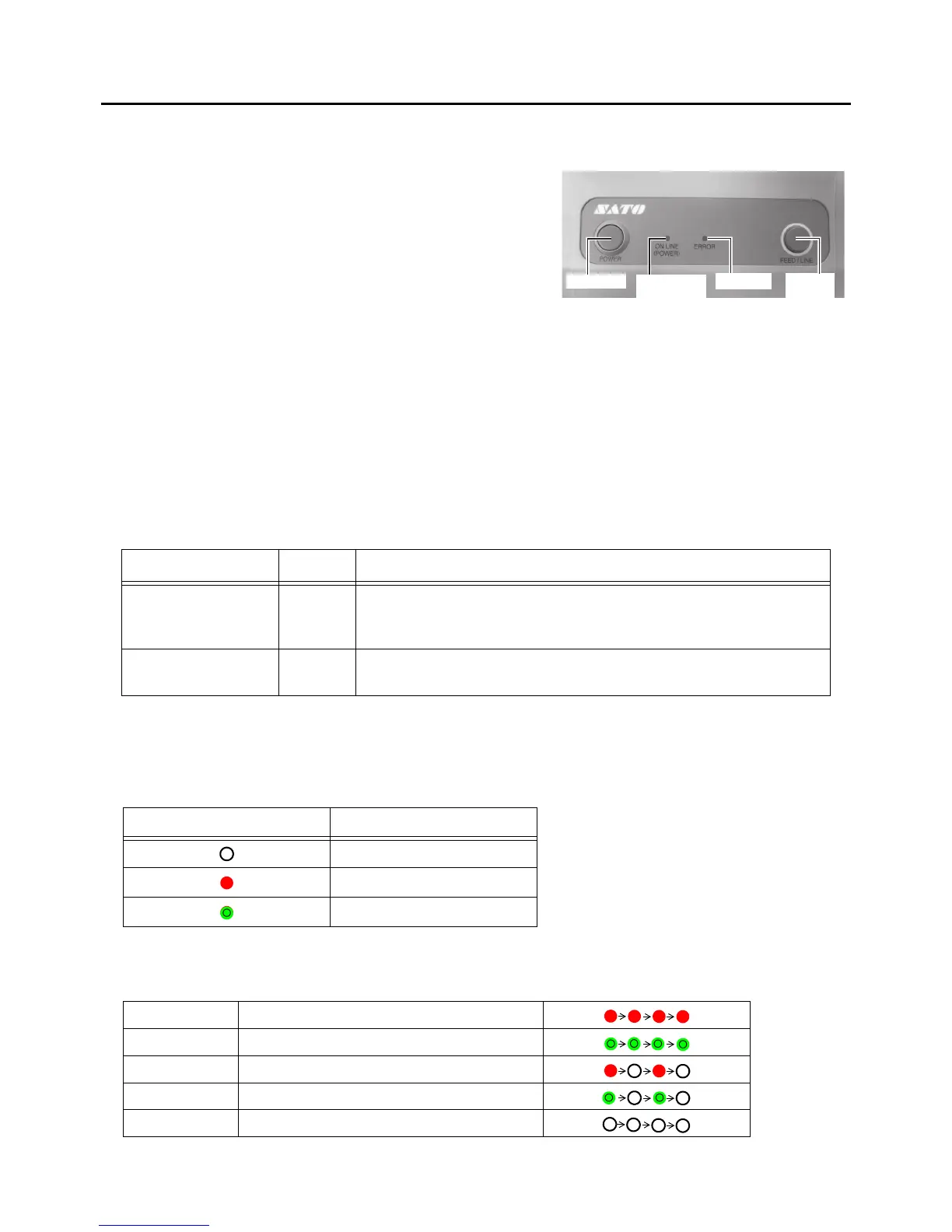 ON LINE (POWER) Green Illuminates when printer is ready to receive data or is in printing