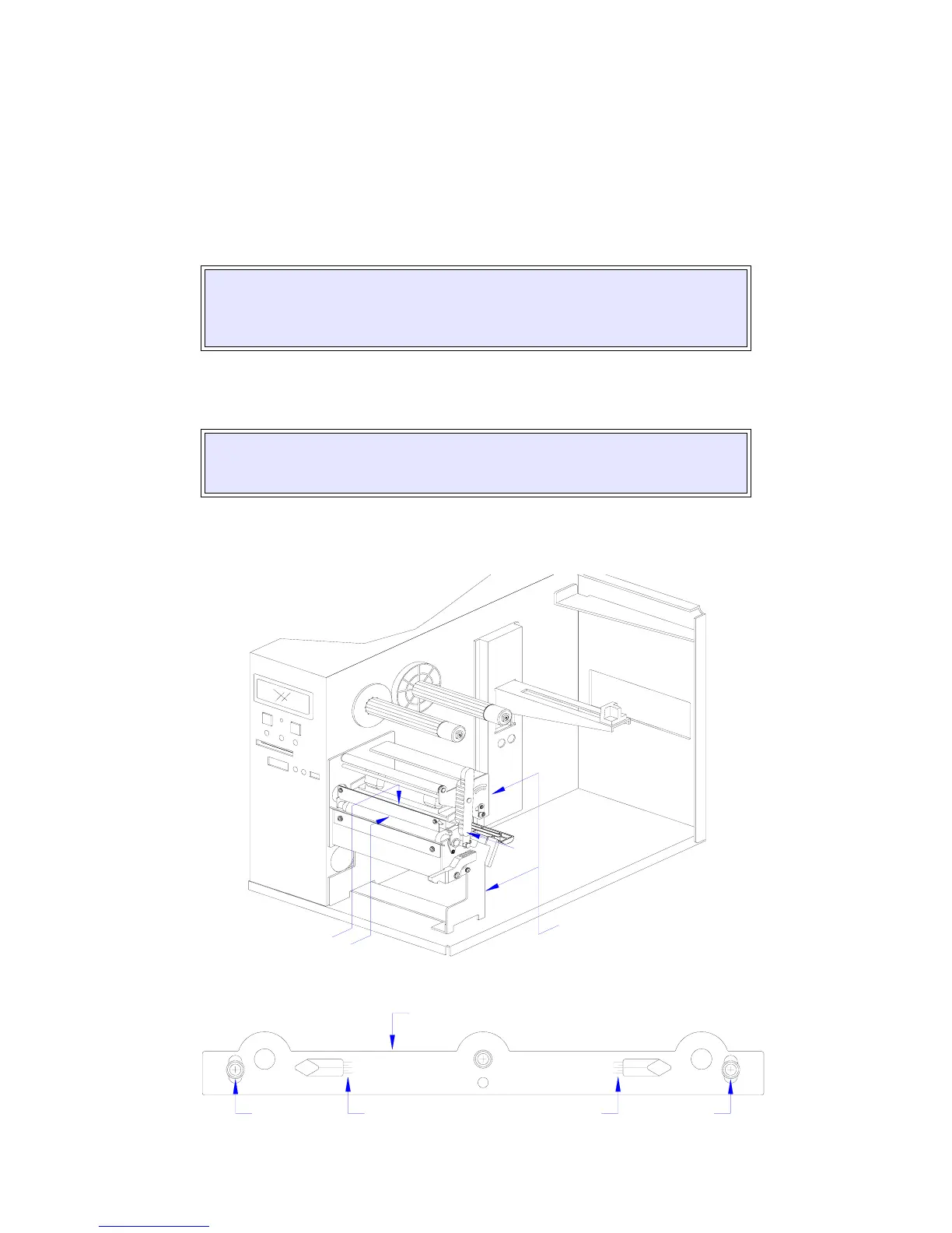 7 Test print a label to determine if print head (2, Figure 6-5a) is properly aligned.
