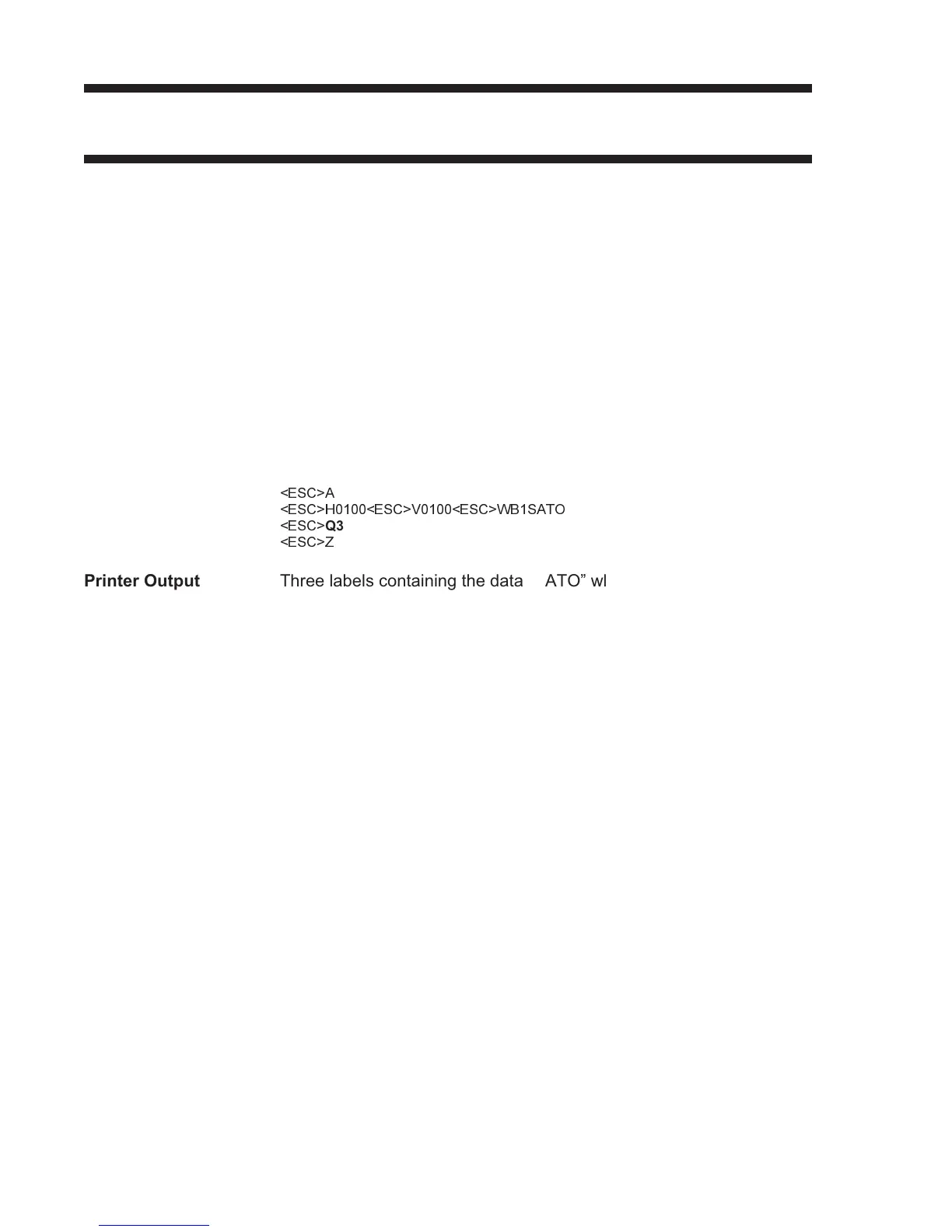 Printer Output Three labels containing the data “SATO” wll be printed.