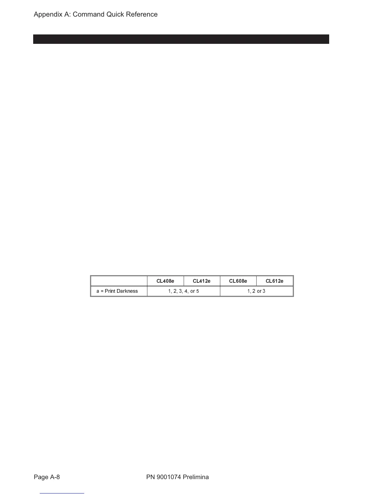 Page A-8 PN 9001074 Preliminary SATO CL Series “e” Printers