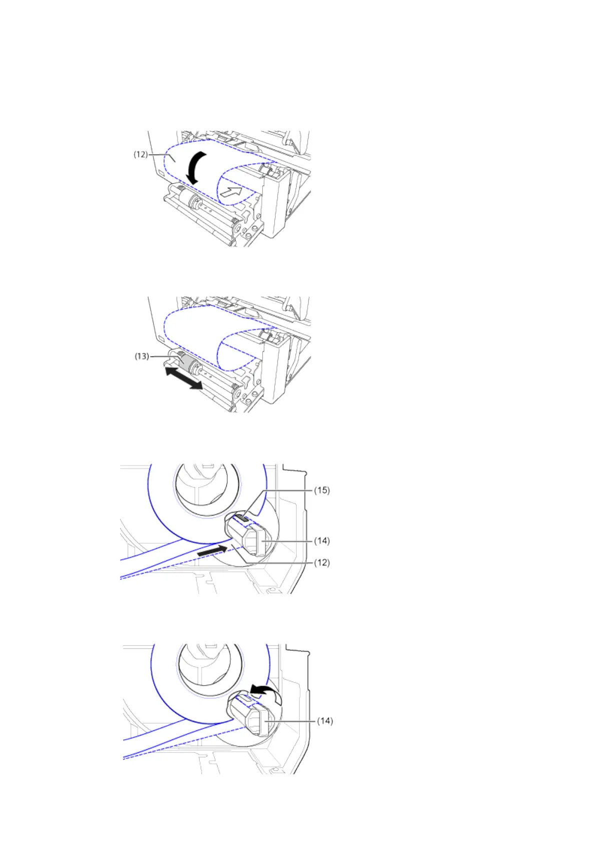 11. Pass the liner (12) below the liner rewinder (14), and attach it with the clip (15).