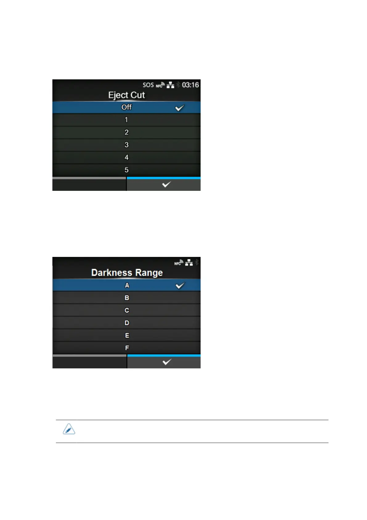 • The normal setting is A. You can also select B to F but the print darkness does not