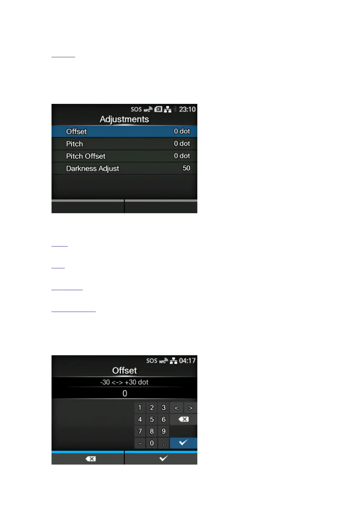 Correct the offset position, print position and print darkness.