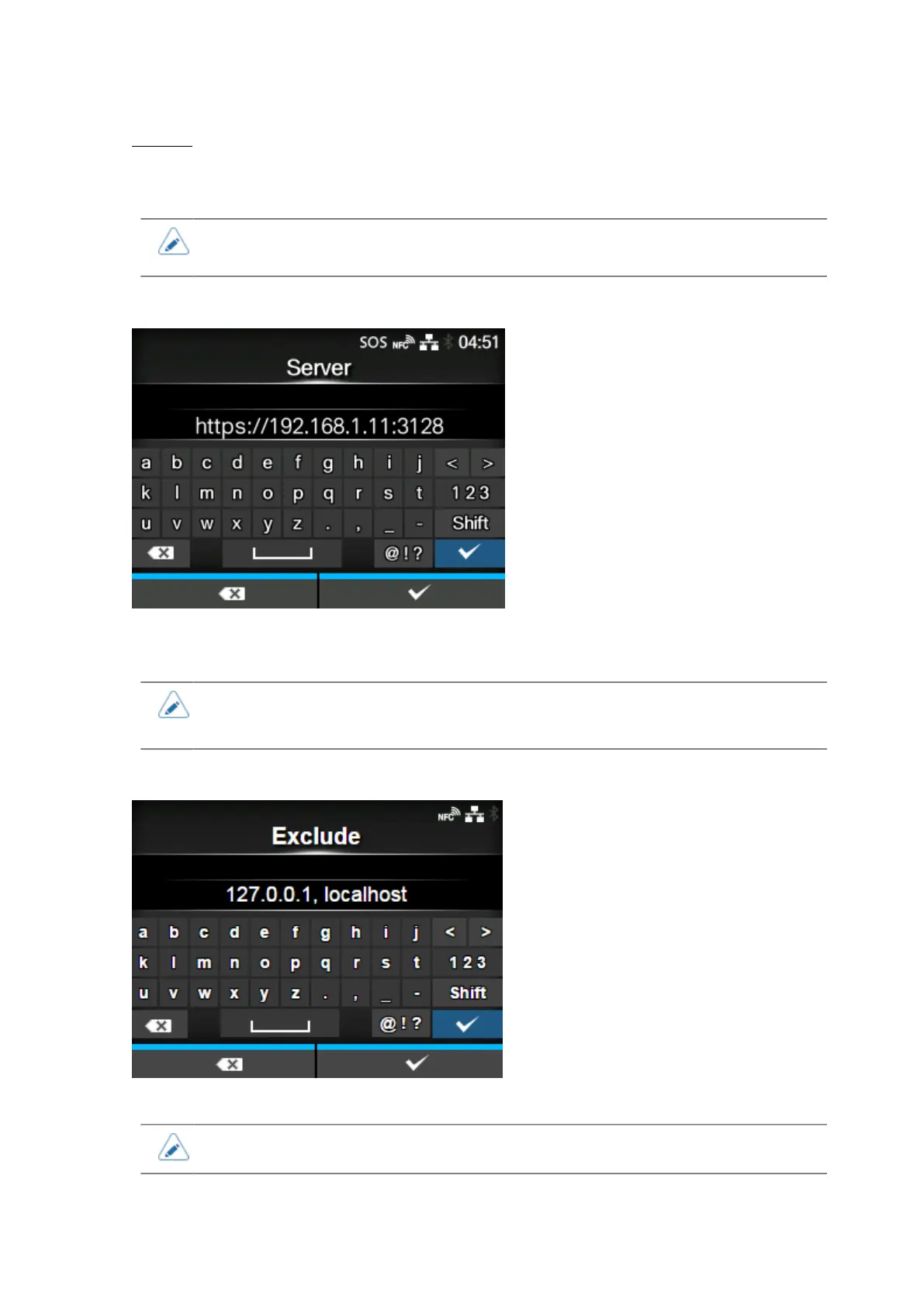 • To enable the proxy, [Server] should be set and [Exclude] must contain at least