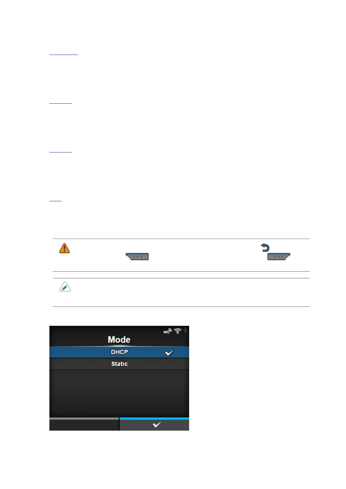 If you have selected [Static] in the [Mode] menu, select to set and check DNS server addresses.