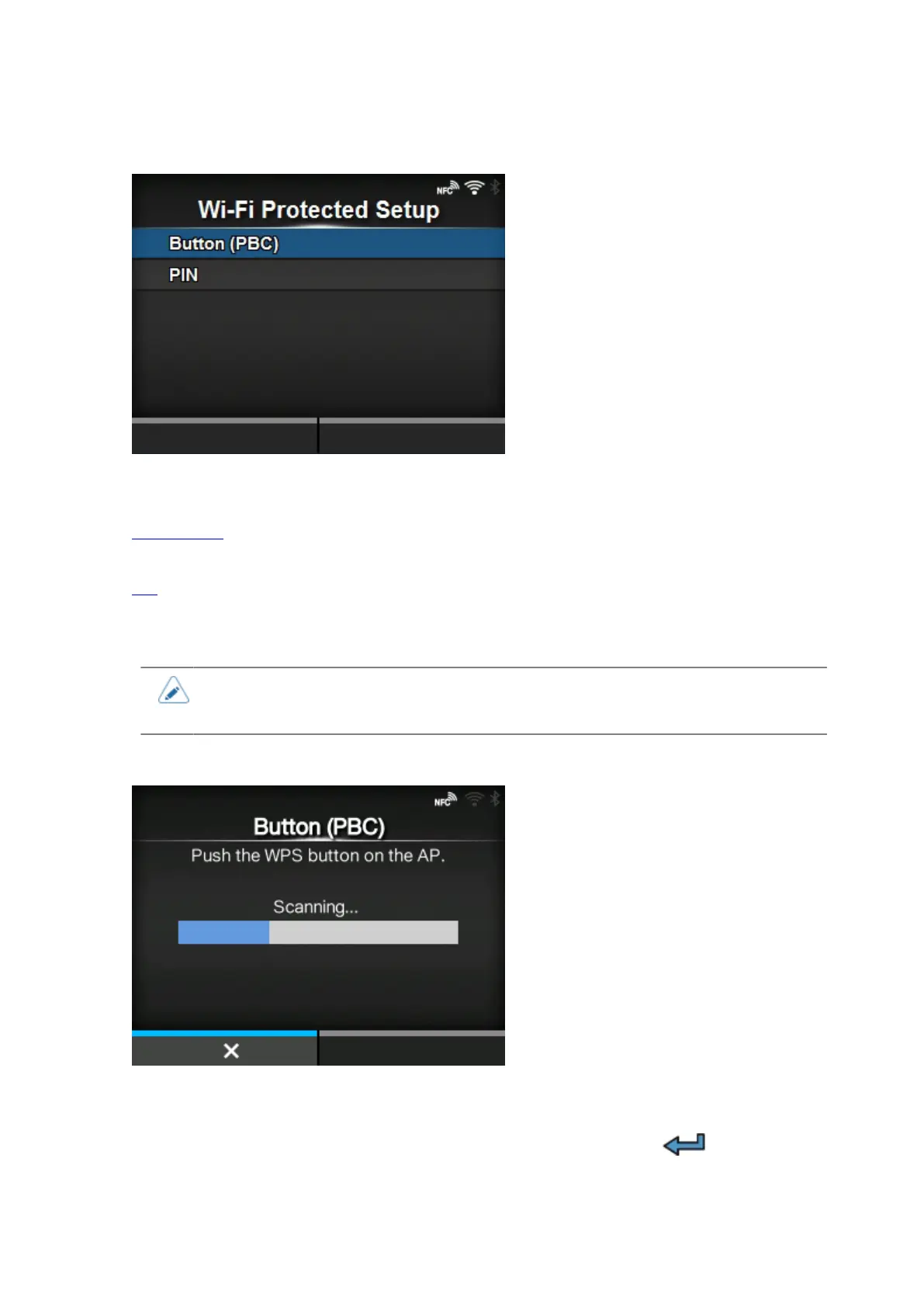 2. When [Scanning...] appears on the screen, press the WPS button on the access point of the