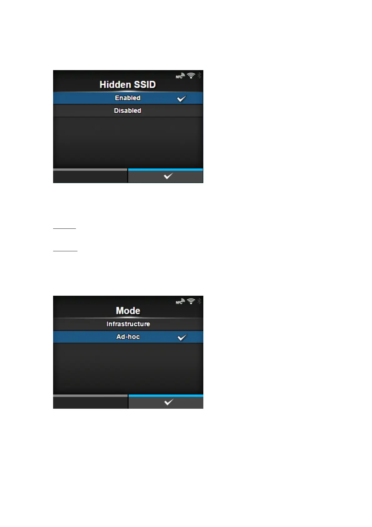 Appears if you have selected [Infrastructure] in the [Mode] menu.