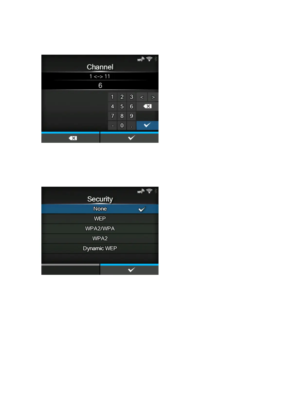 If you have selected [Ad-hoc] in the [Mode] menu, only [None] and [WEP] will be available.