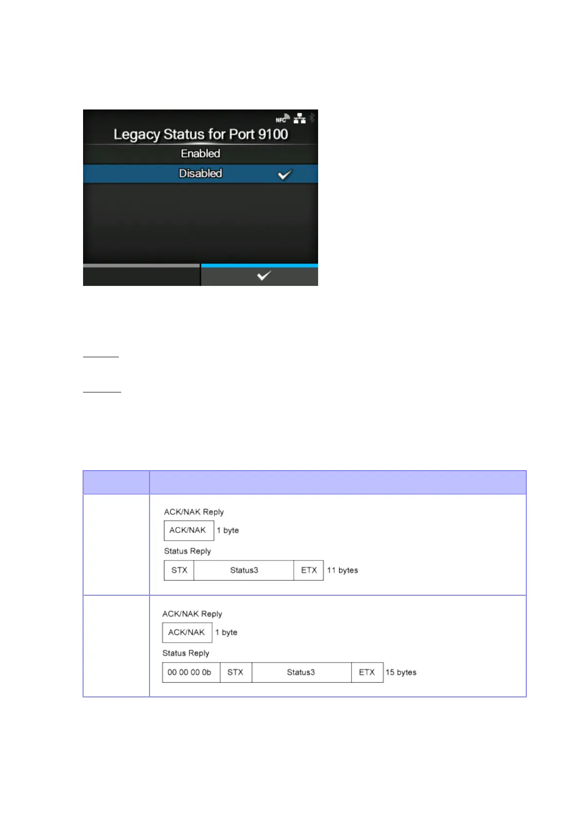 In legacy status, the return status format of port3 becomes as follows: