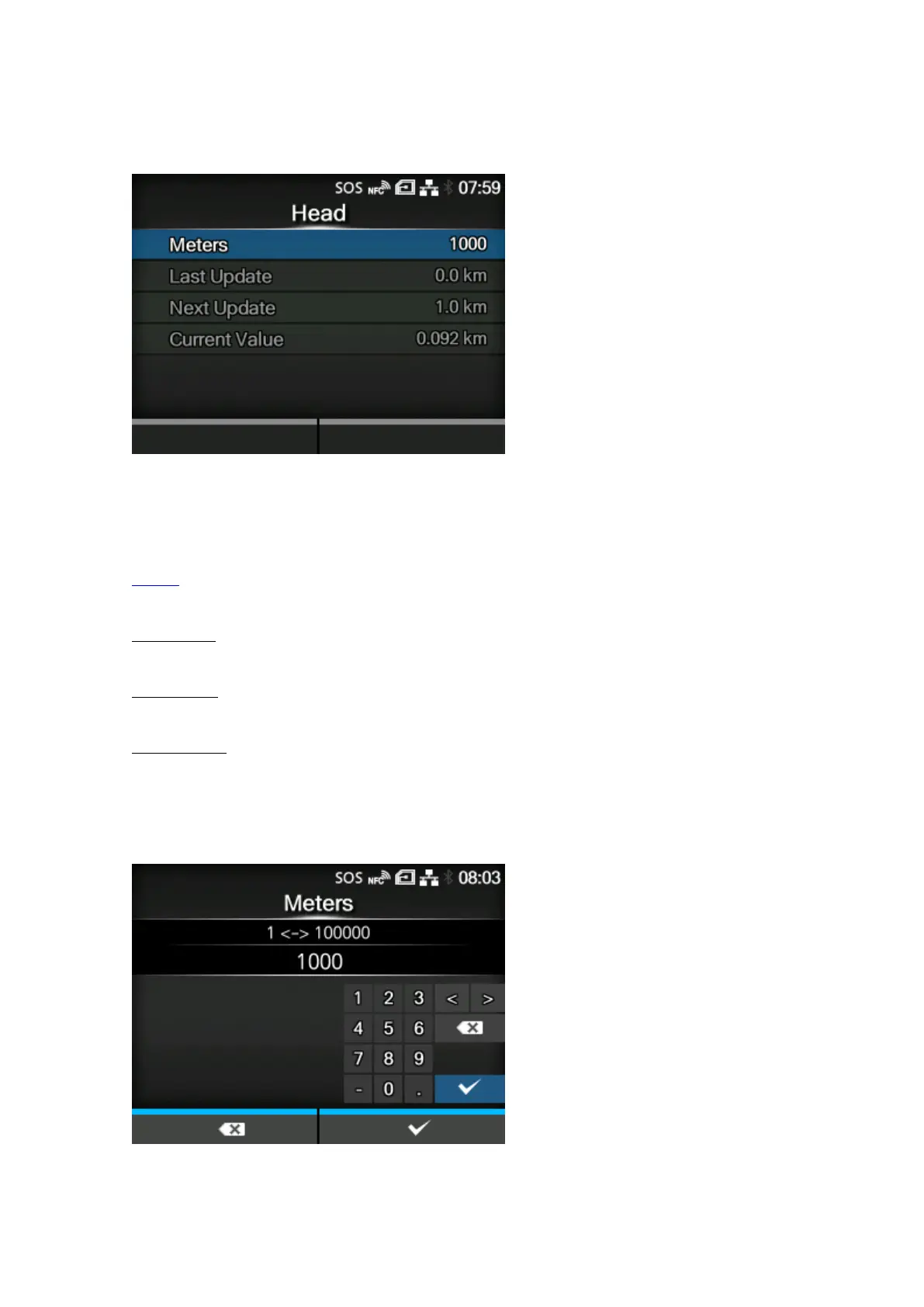Shows the print distance of the print head for the next periodic notification.