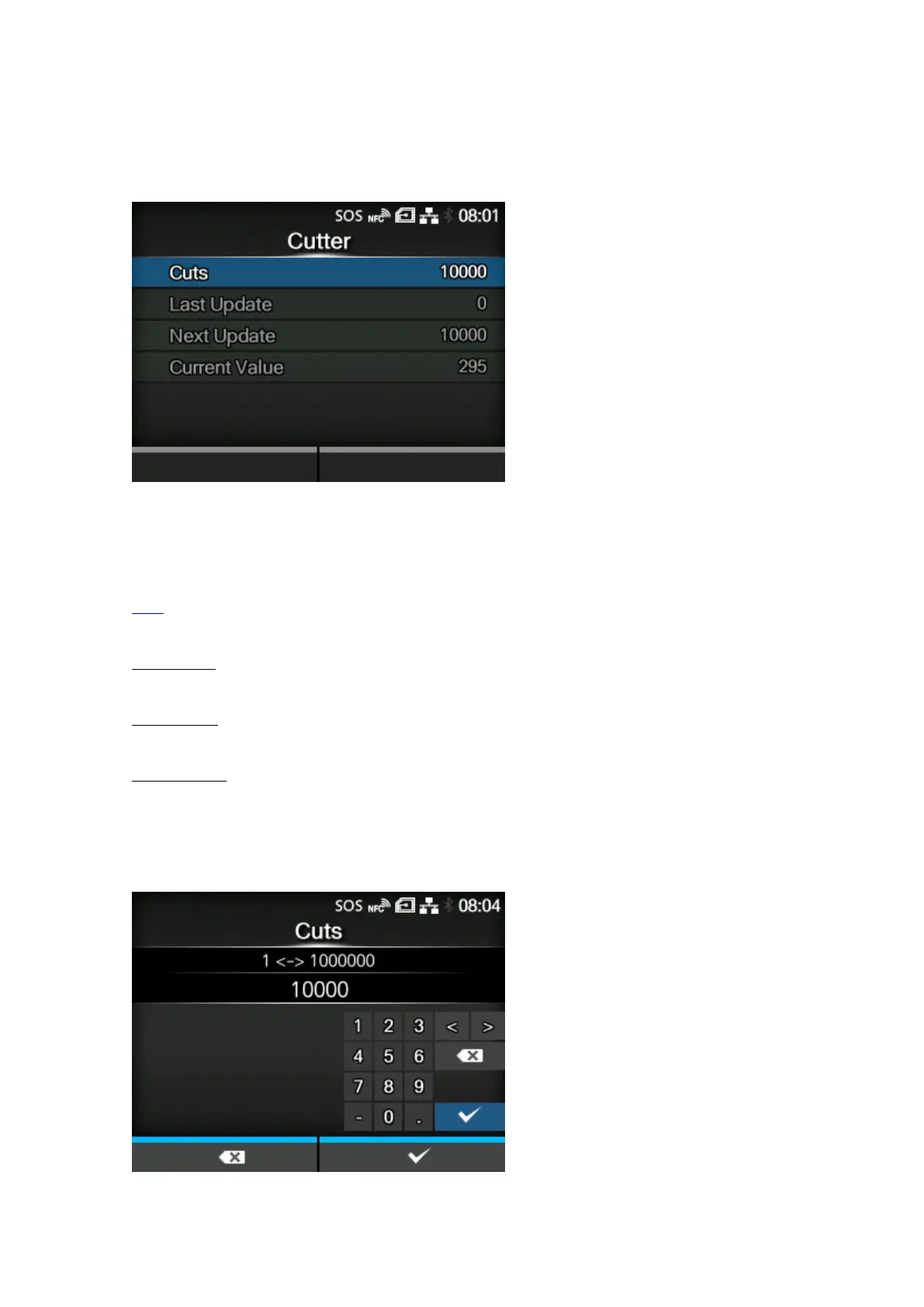 Appears only if you have selected [Cutter] or [Head+Cutter] for [Counter] in the [Type] menu.