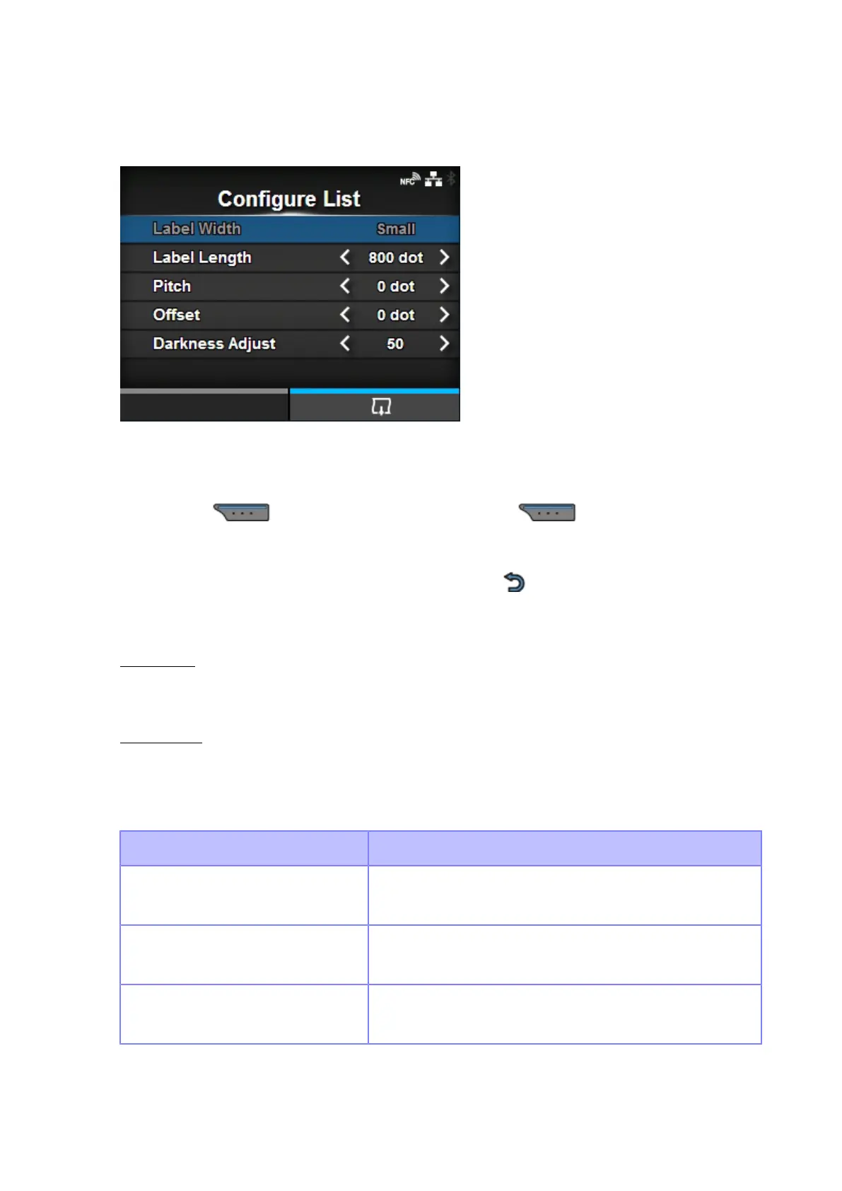 1. Check and set the items as listed on the [Configure List] menu.