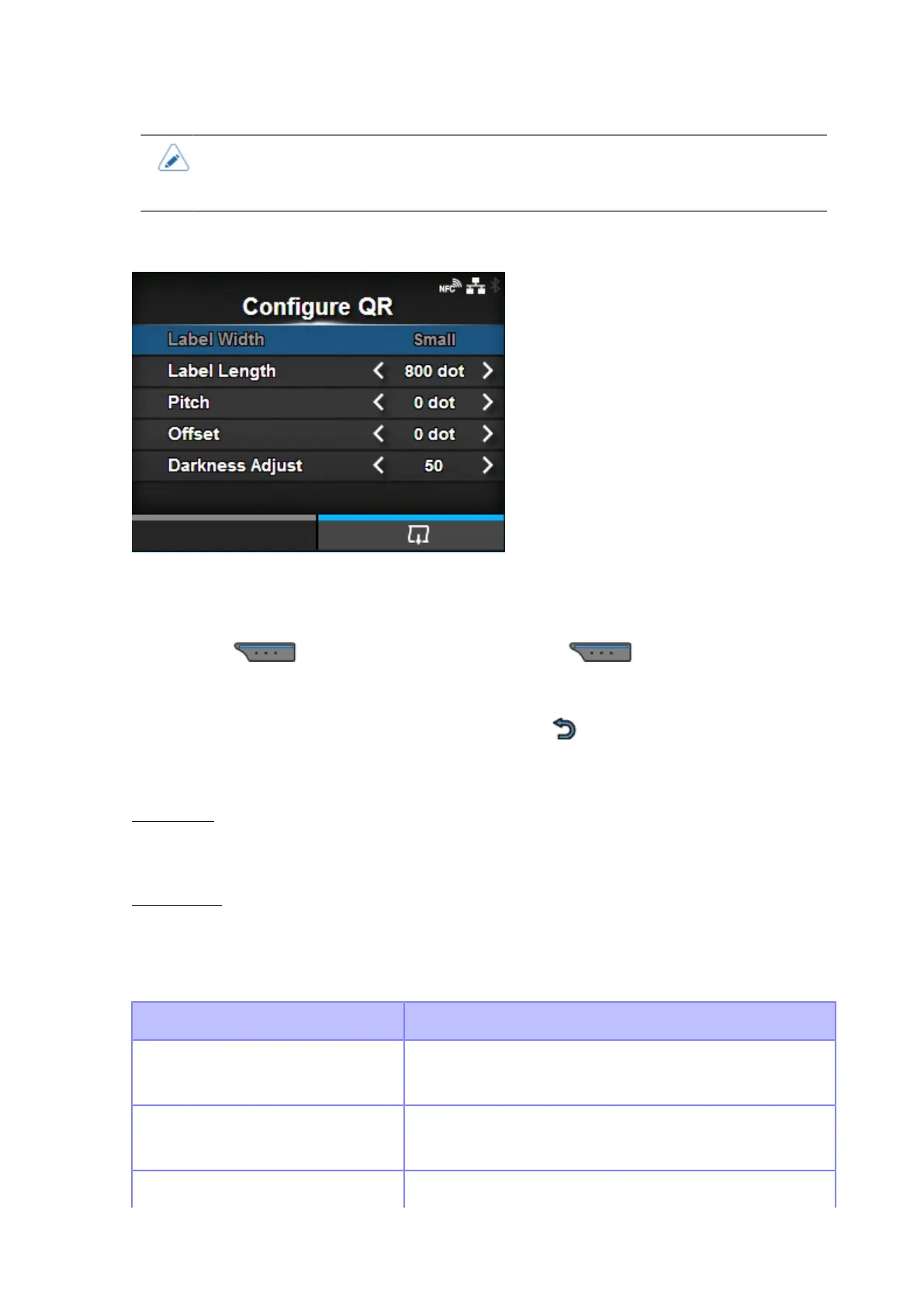 1. Check and set the items as listed on the [Configure QR] menu.
