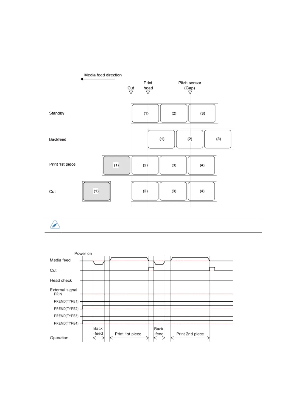 Operation 13: Cutter Mode, Backfeed Before Printing, and Without Pulse Input (Head