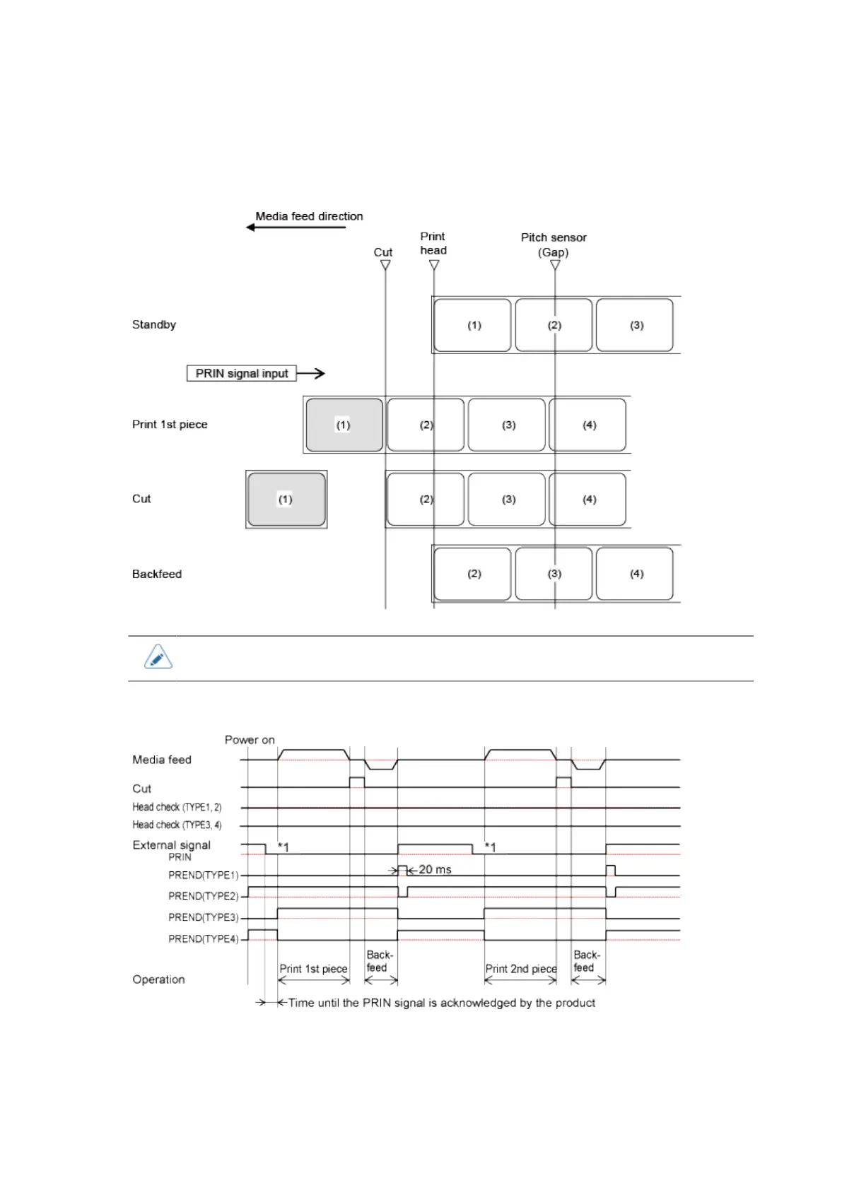 Operation 19: Cutter Mode, Backfeed After Printing, and with Pulse Input (Head