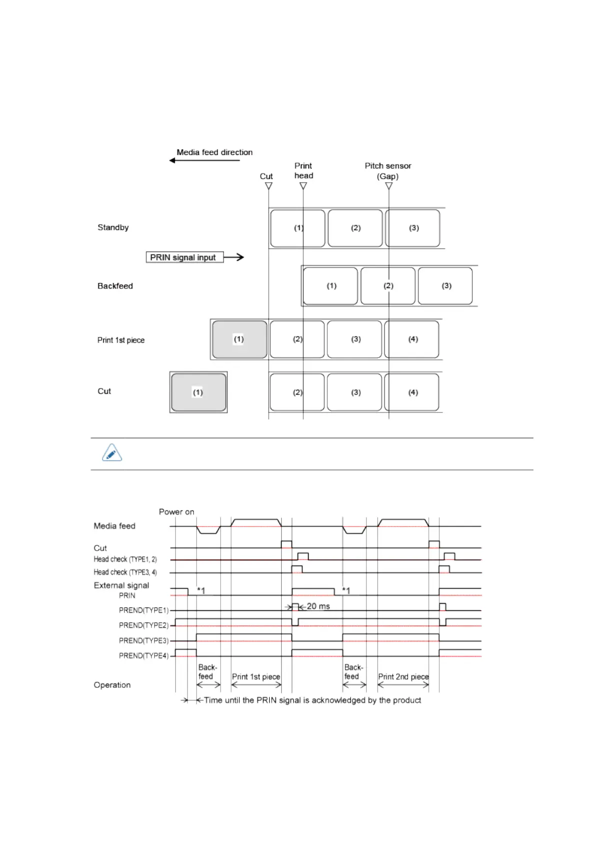 Operation 22: Cutter Mode, Backfeed Before Printing, and with Pulse Input (Head