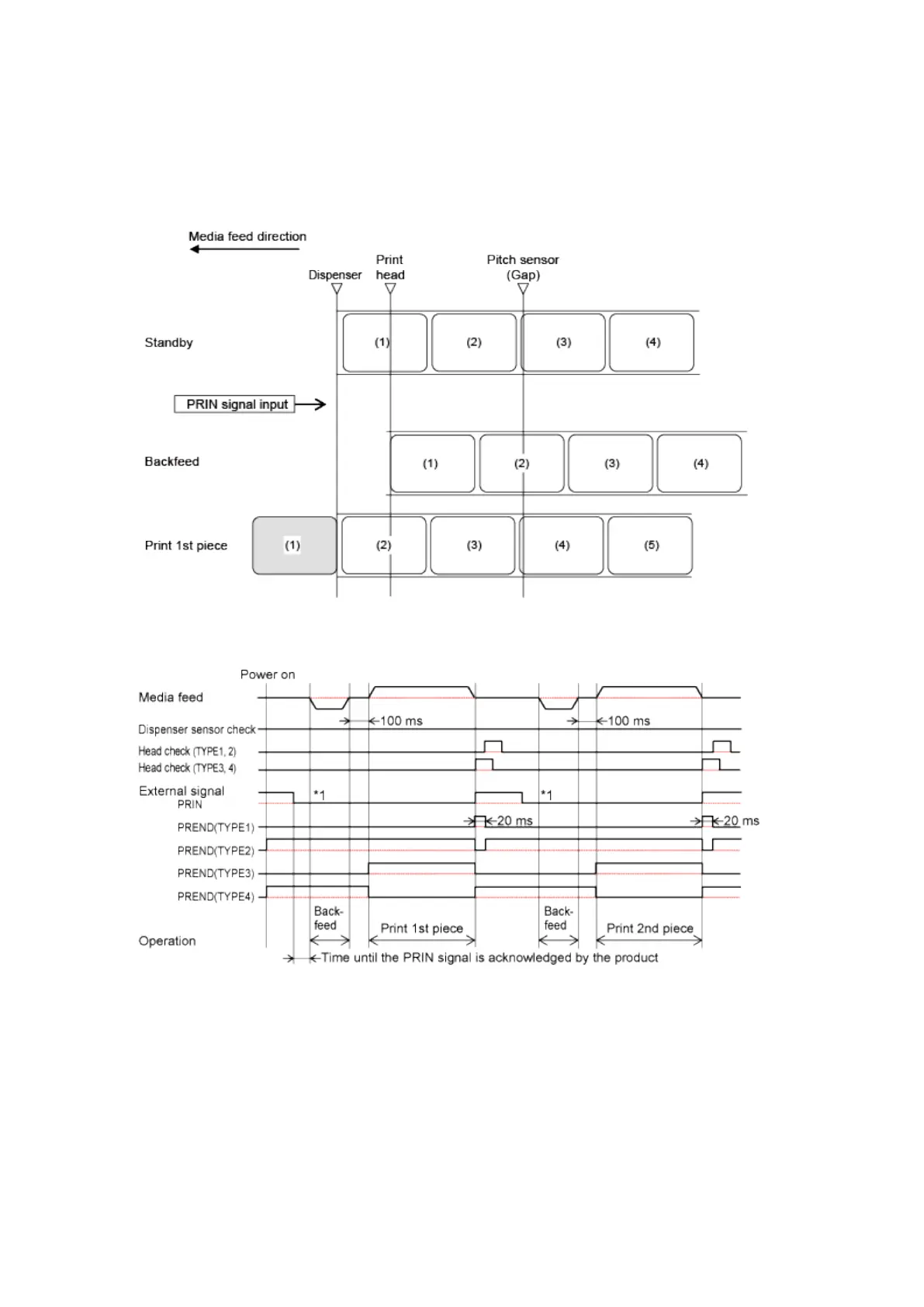 Operation 34: Dispenser Mode, Backfeed Before Printing, and with Pulse Input