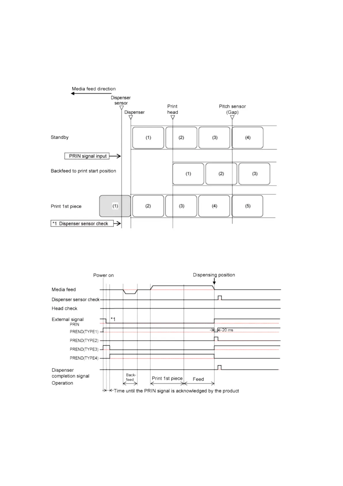 Operation 37: Dispenser Mode, Backfeed Before Printing, with Pulse Input, and with