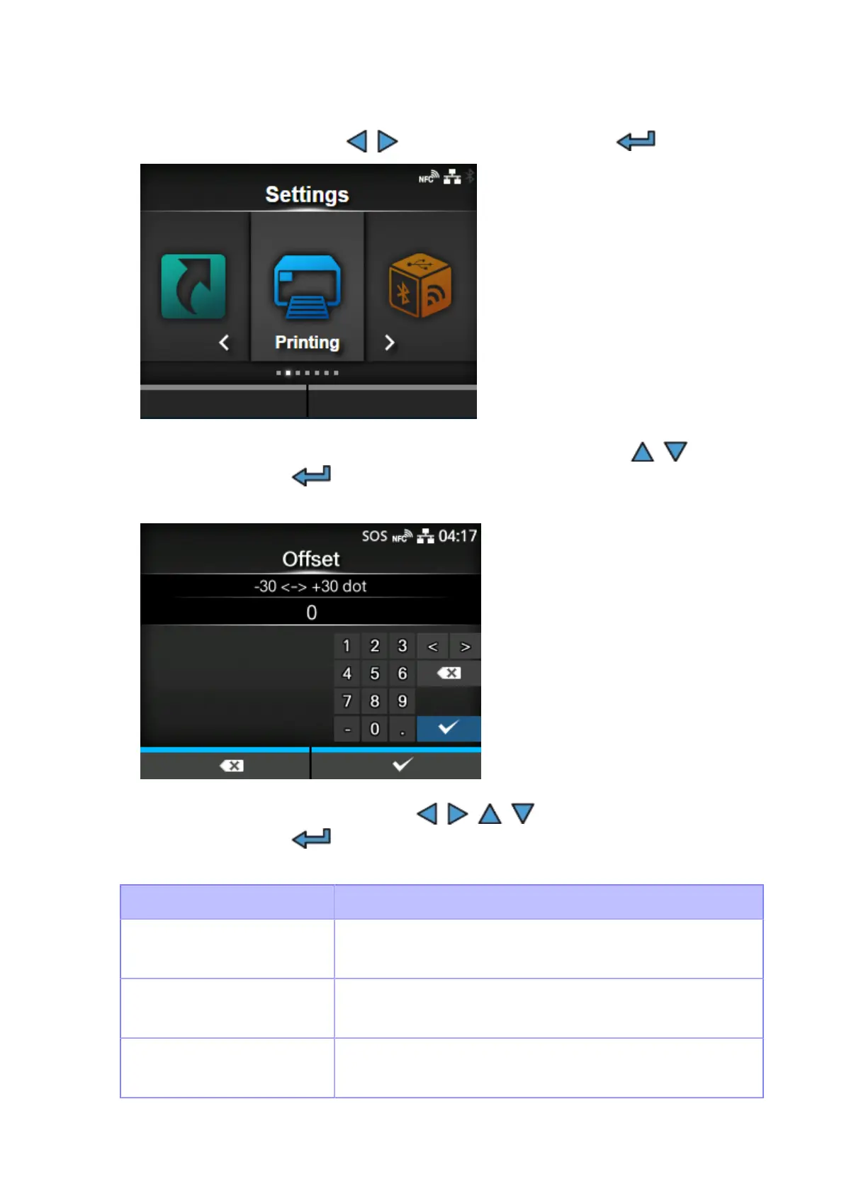 The [Offset] screen appears.