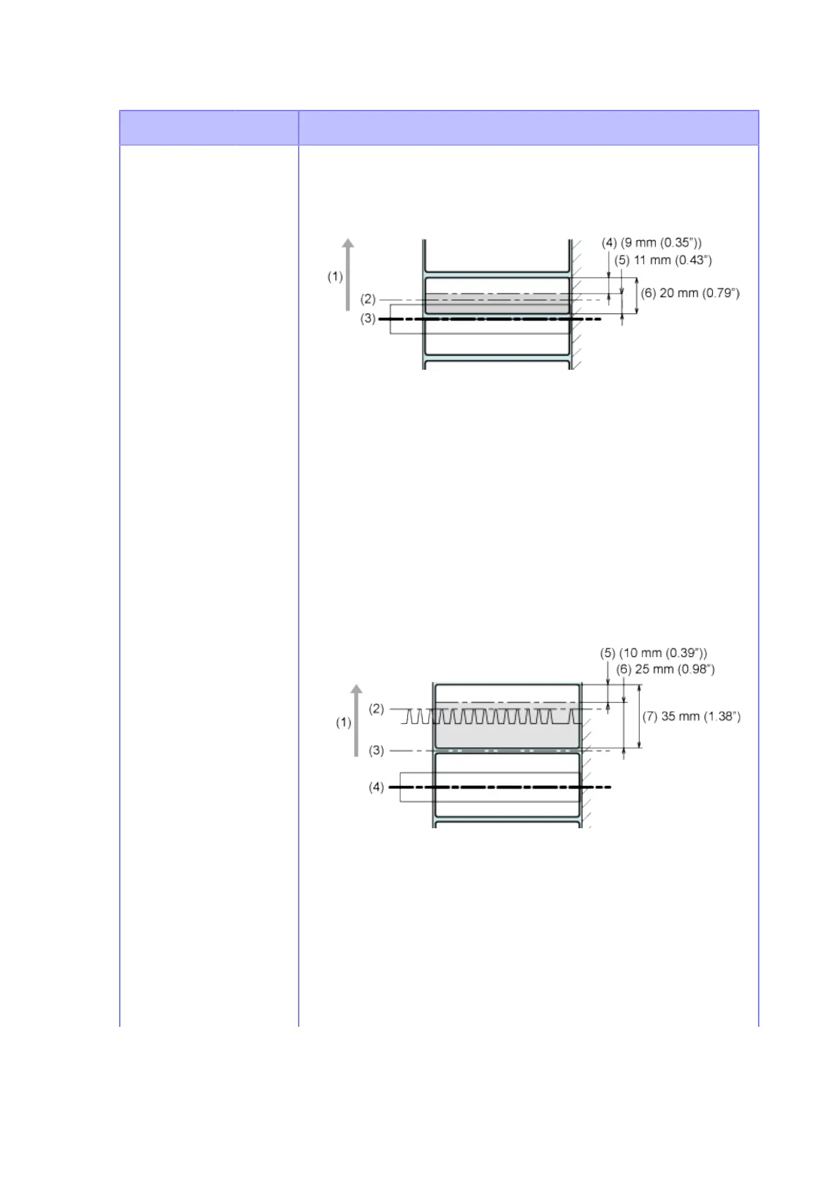 ◦ Cutter (cutting every label): 25 mm (0.98") from the trailing end of