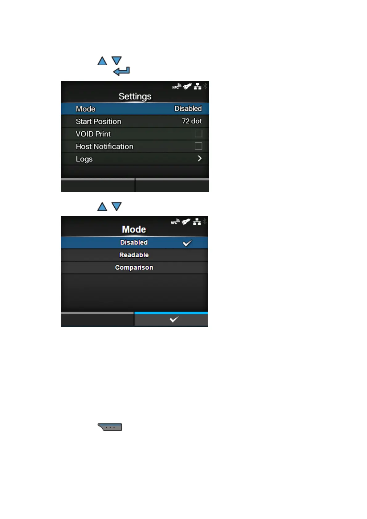 Press the / buttons to select [Barcode Checker] > [Settings] > [Mode], and