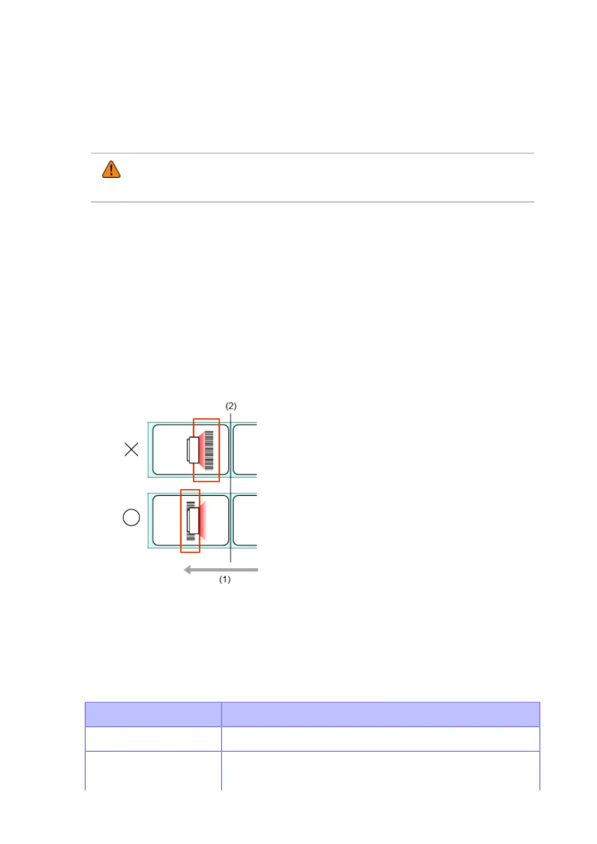 • Design the label layout so that barcodes or 2D codes do not remain within the scanning range