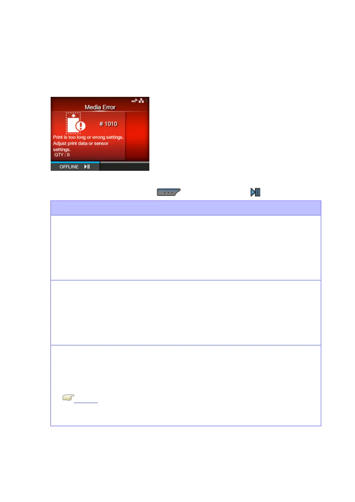 Open/close the print head, or press the button (OFFLINE) or the button.