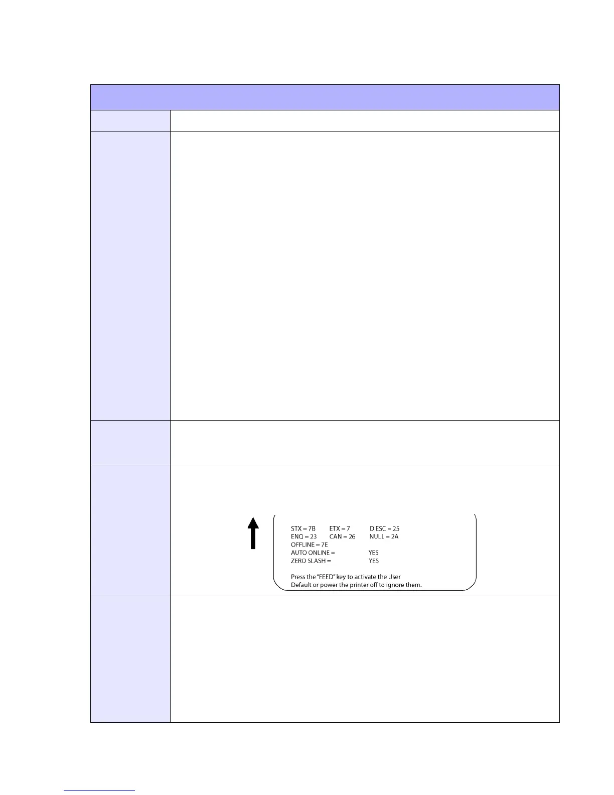 h = Auto-Online. Printer powers up in the online mode.