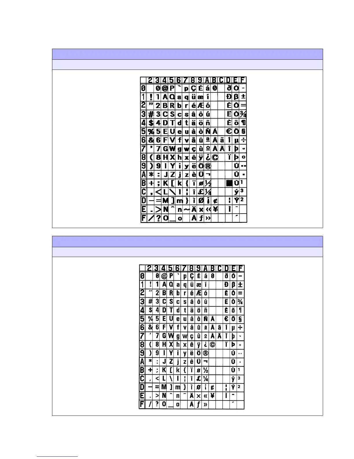 TABLE 15: CHARACTER FONT SET (<ESC>XB)