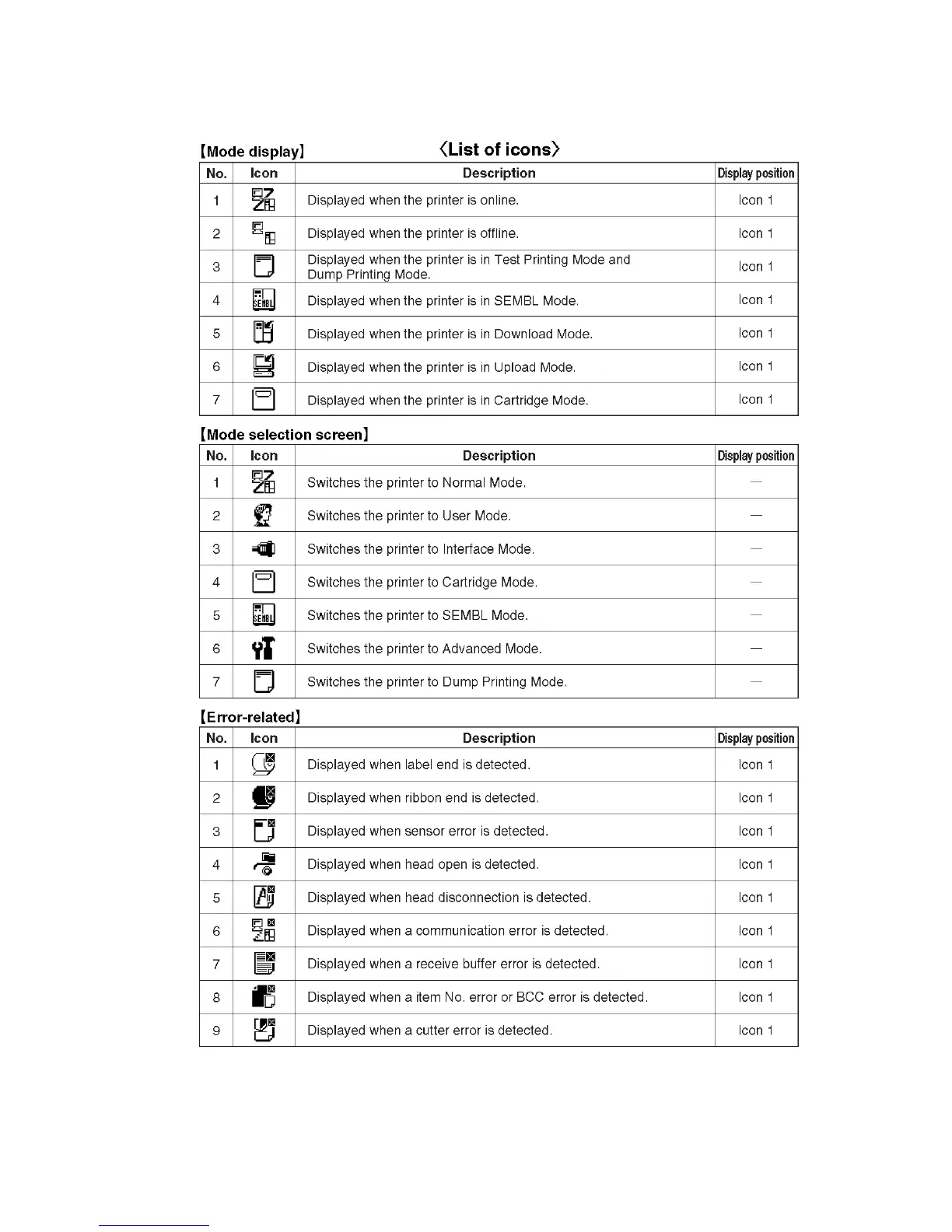 SATO GT424 - Screen Icons and Their Meaning