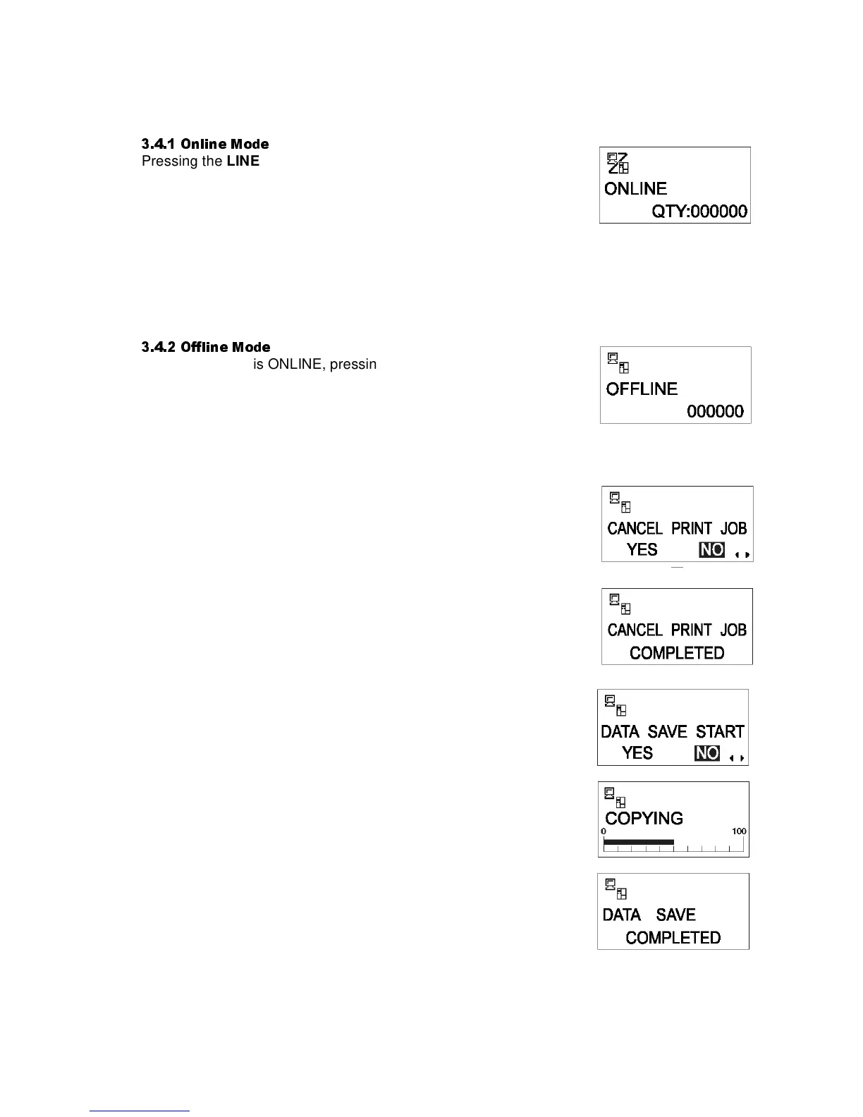 When the printer is OFFLINE, the activities for ONLINE mode are