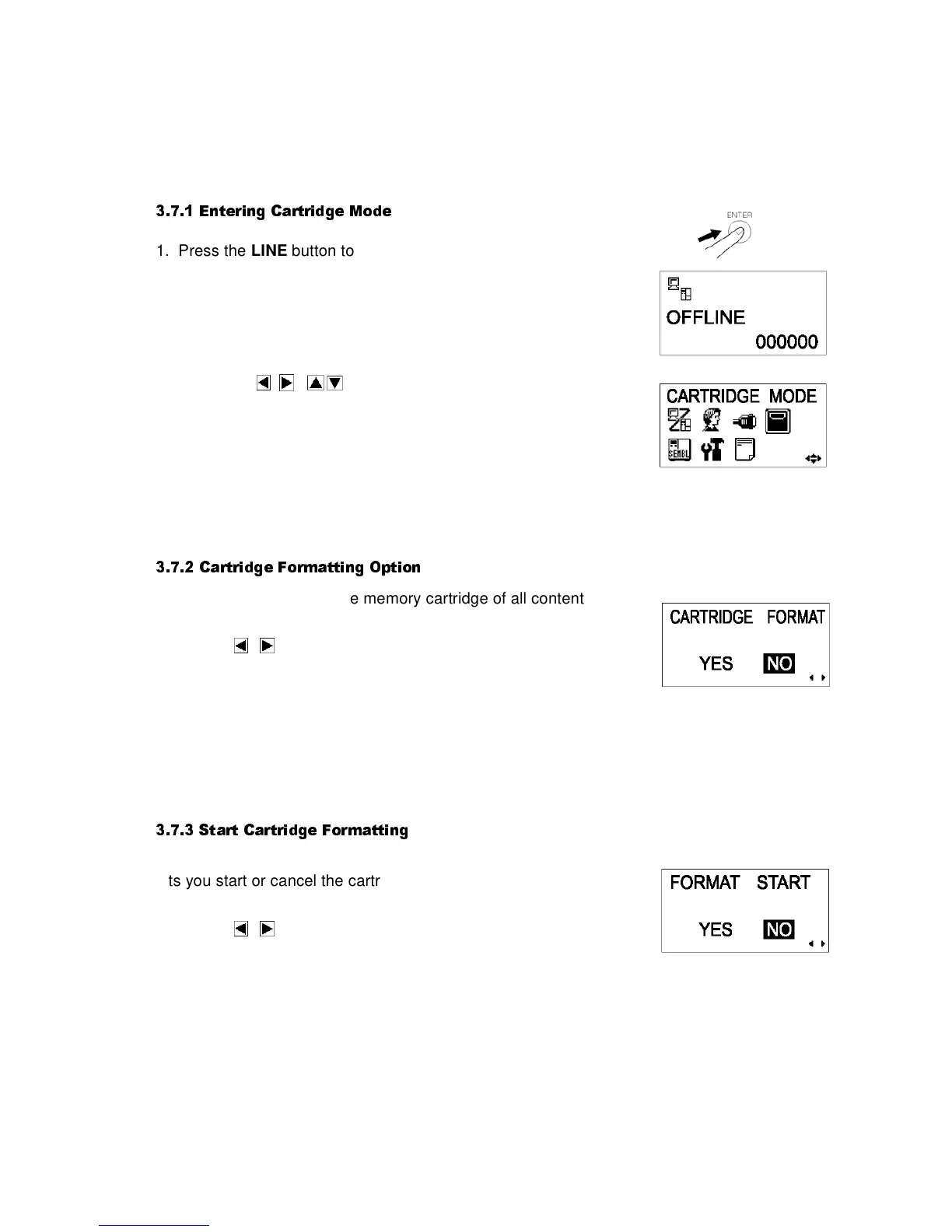 Selecting NO returns you to the CARTRIDGE FORMAT screen.