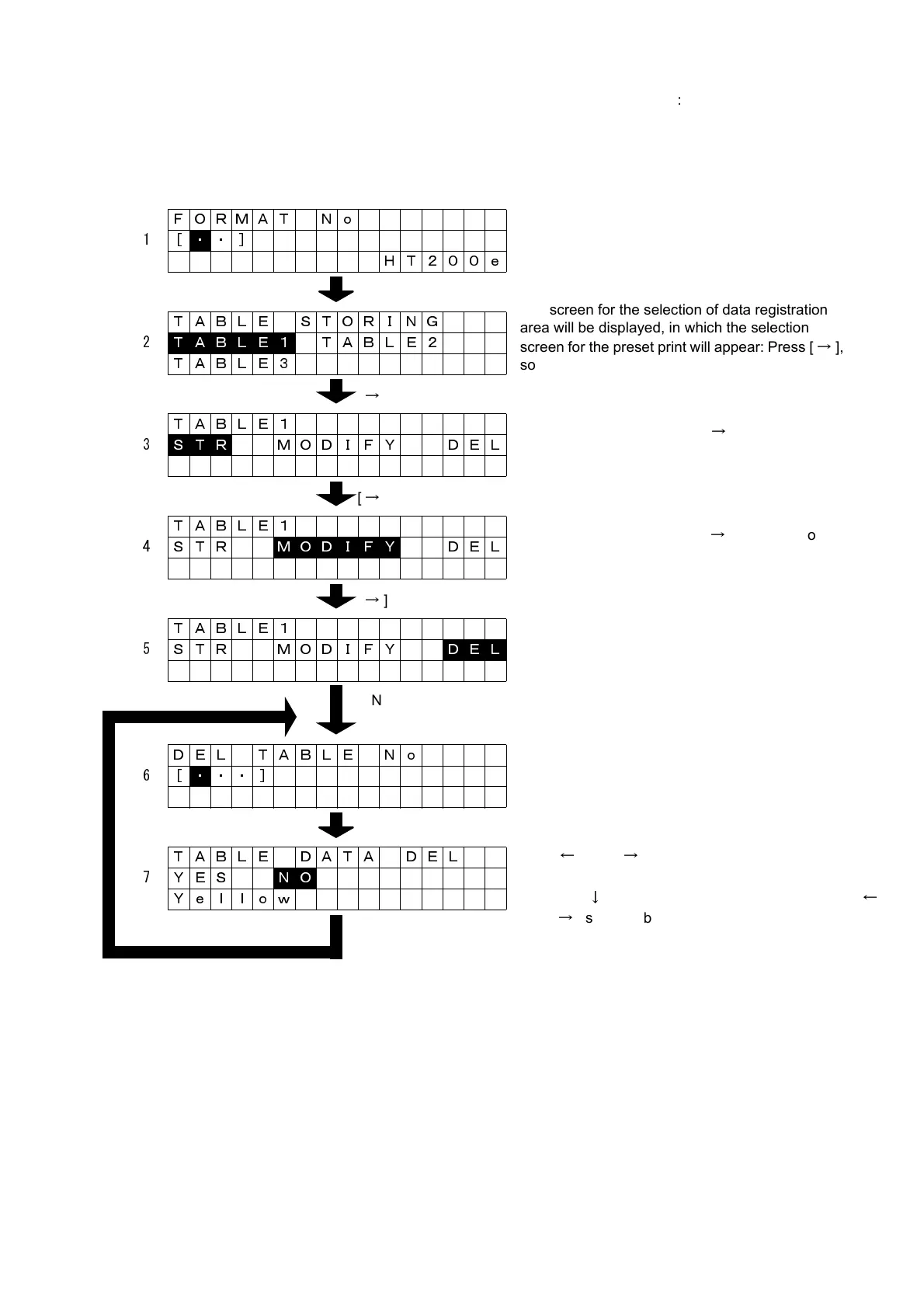 The screen for the selection of table data deletion
