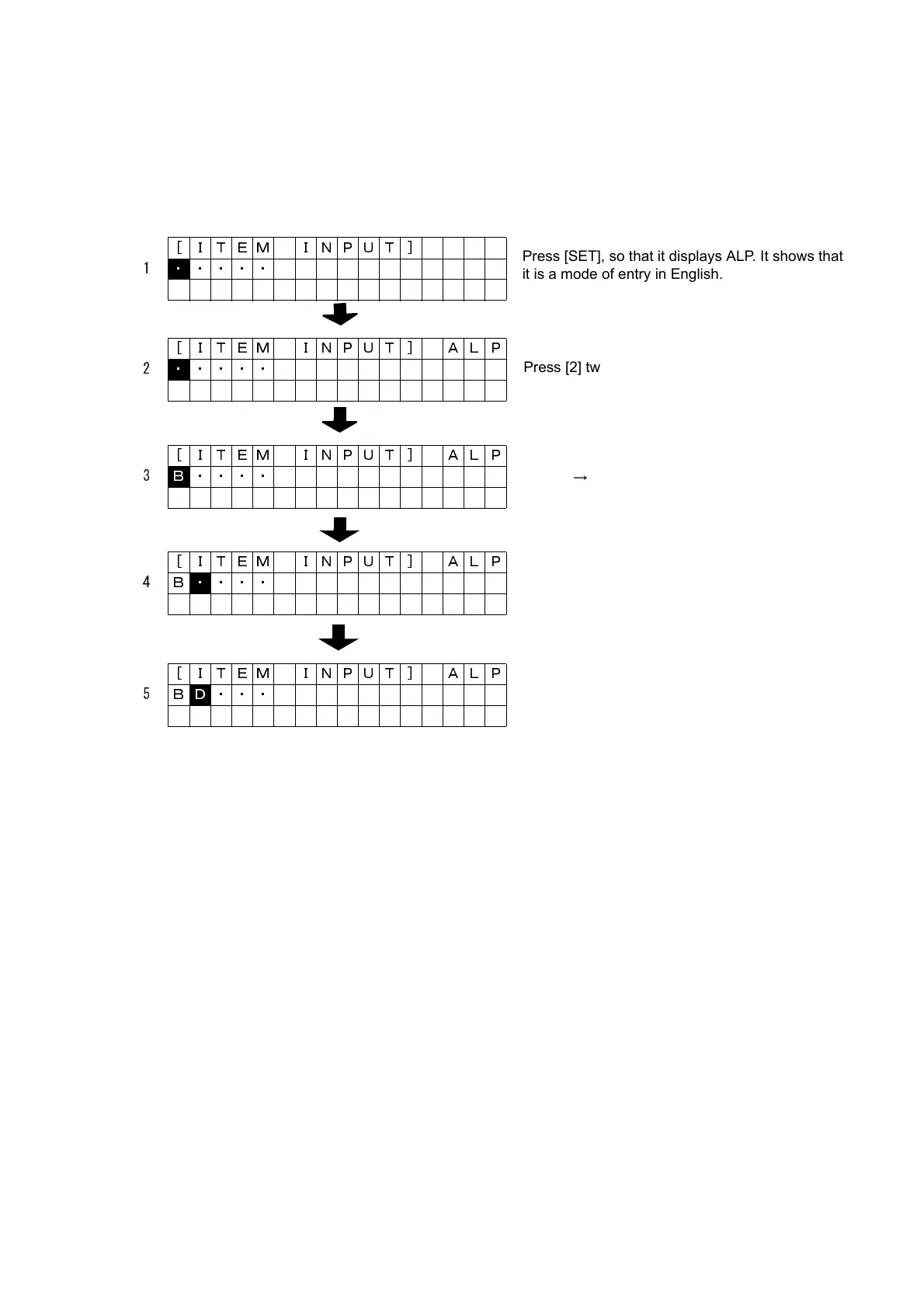 Press [2] twice, so that it displays “B”.