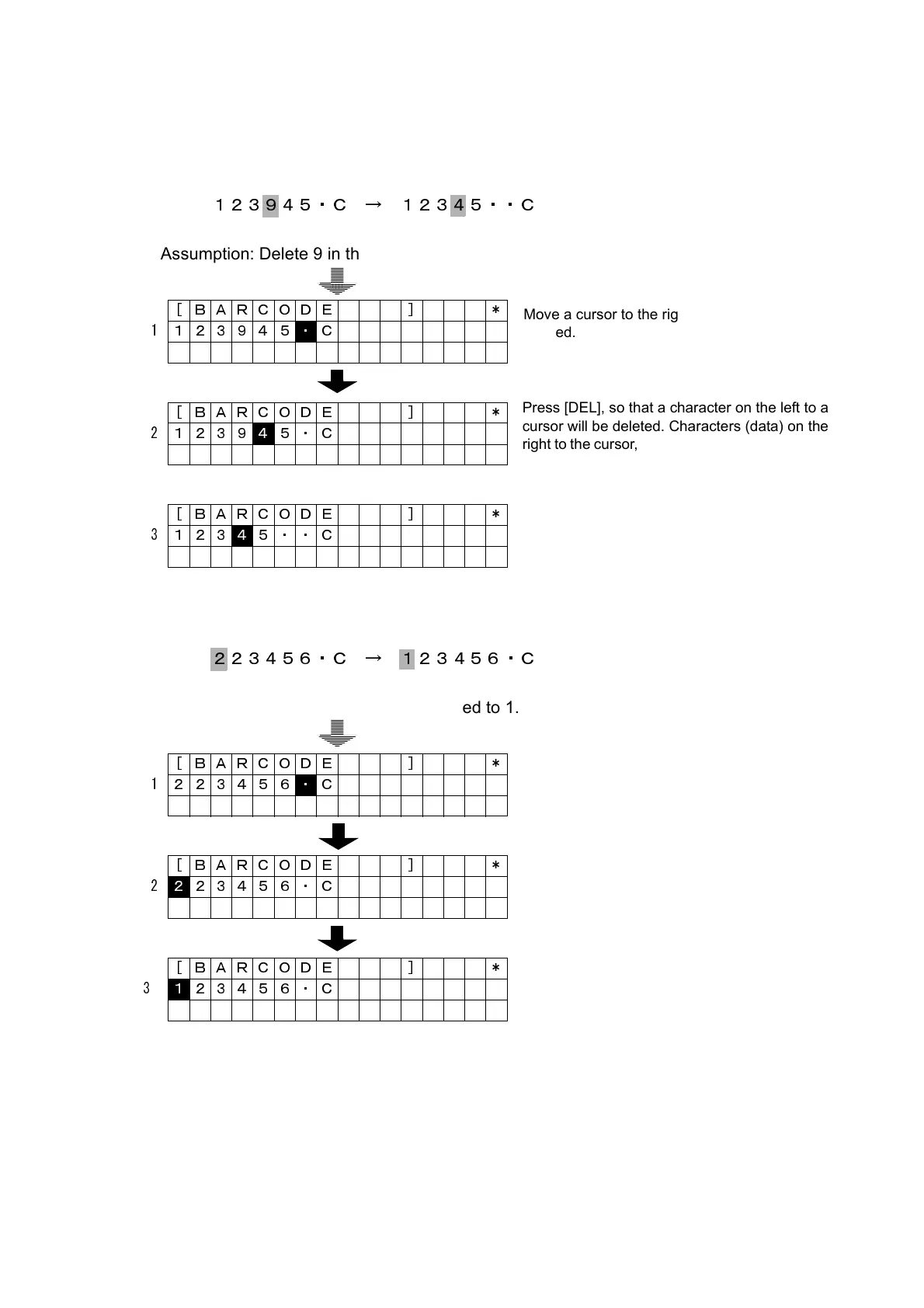 cursor will be deleted. Characters (data) on the