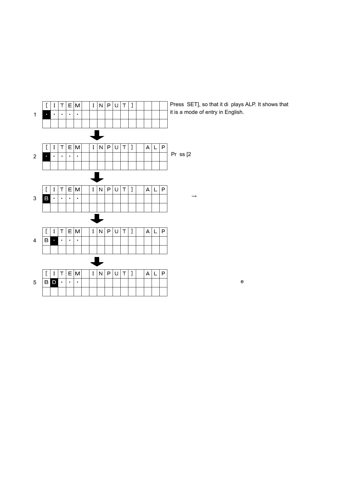 Press [SET], so that it displays ALP. It shows that