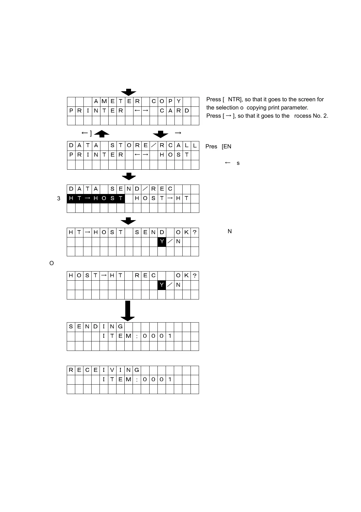 Note: When print parameter is transferred, on-line cable must be connected to the host before turning the power