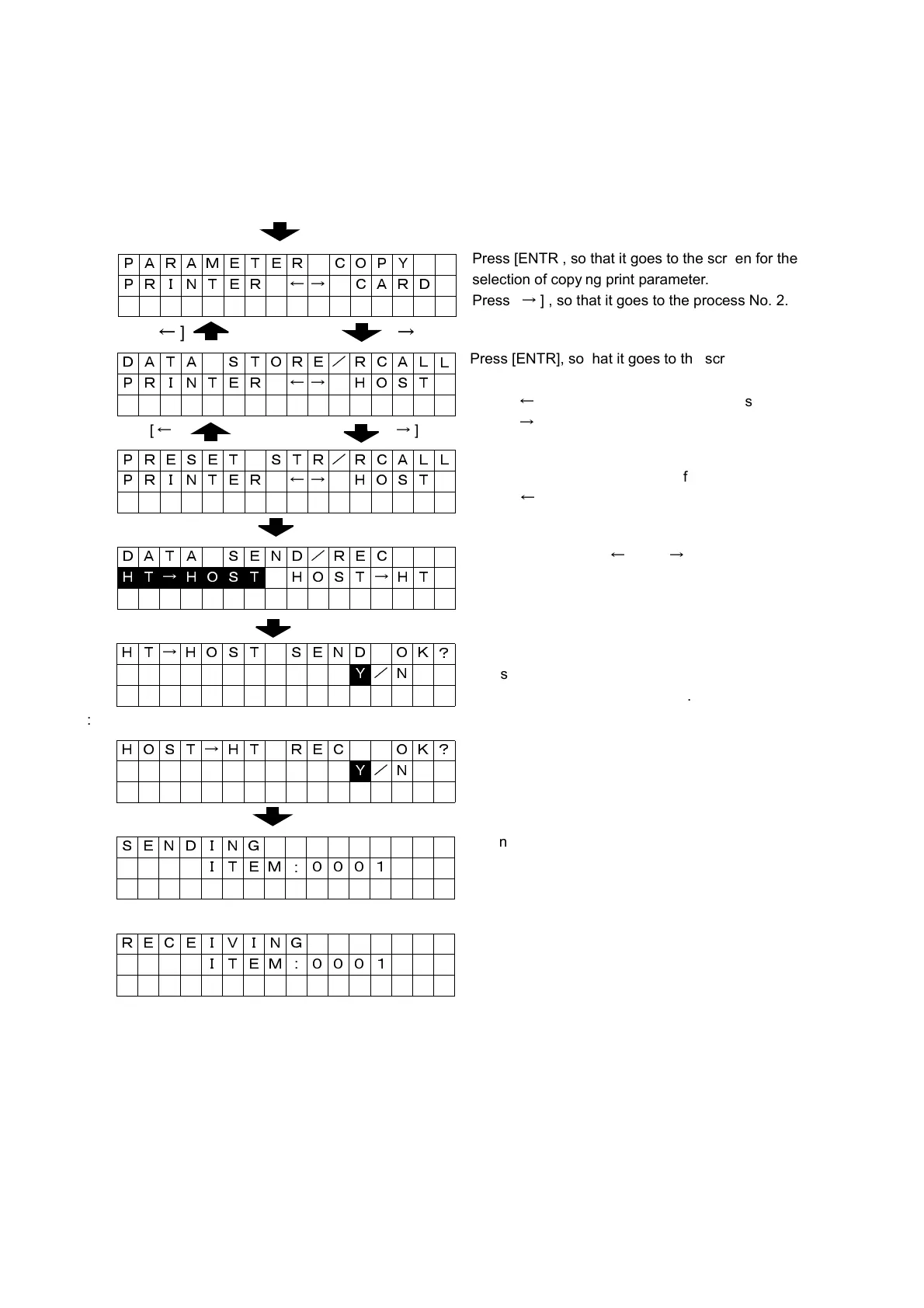 Note: When preset data is transferred, on-line cable must be connected to the host before turning the power