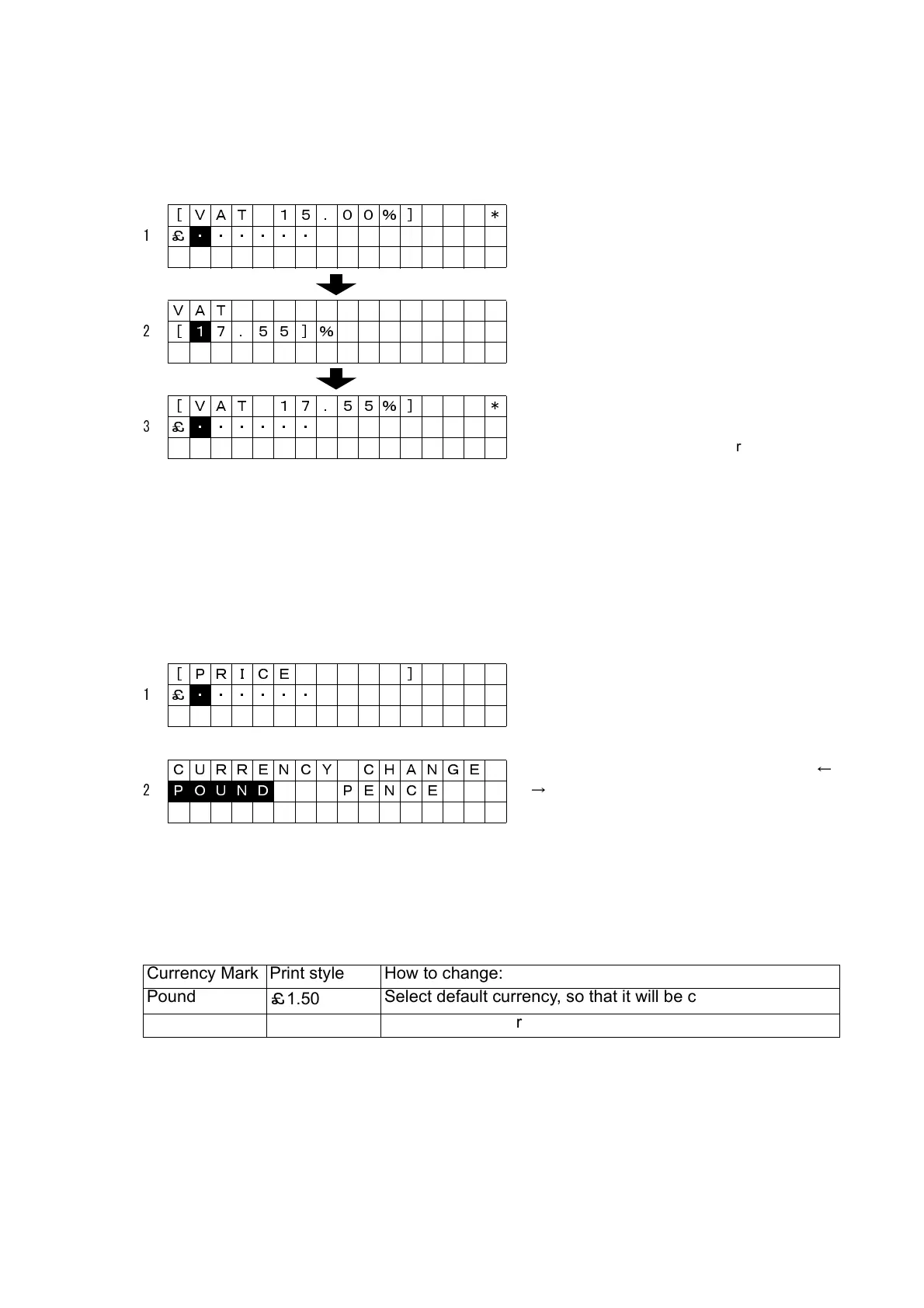 2. Pound and pence: If, in the process No. 1, [SHFT] is pressed, it will not be changed to the presentation of