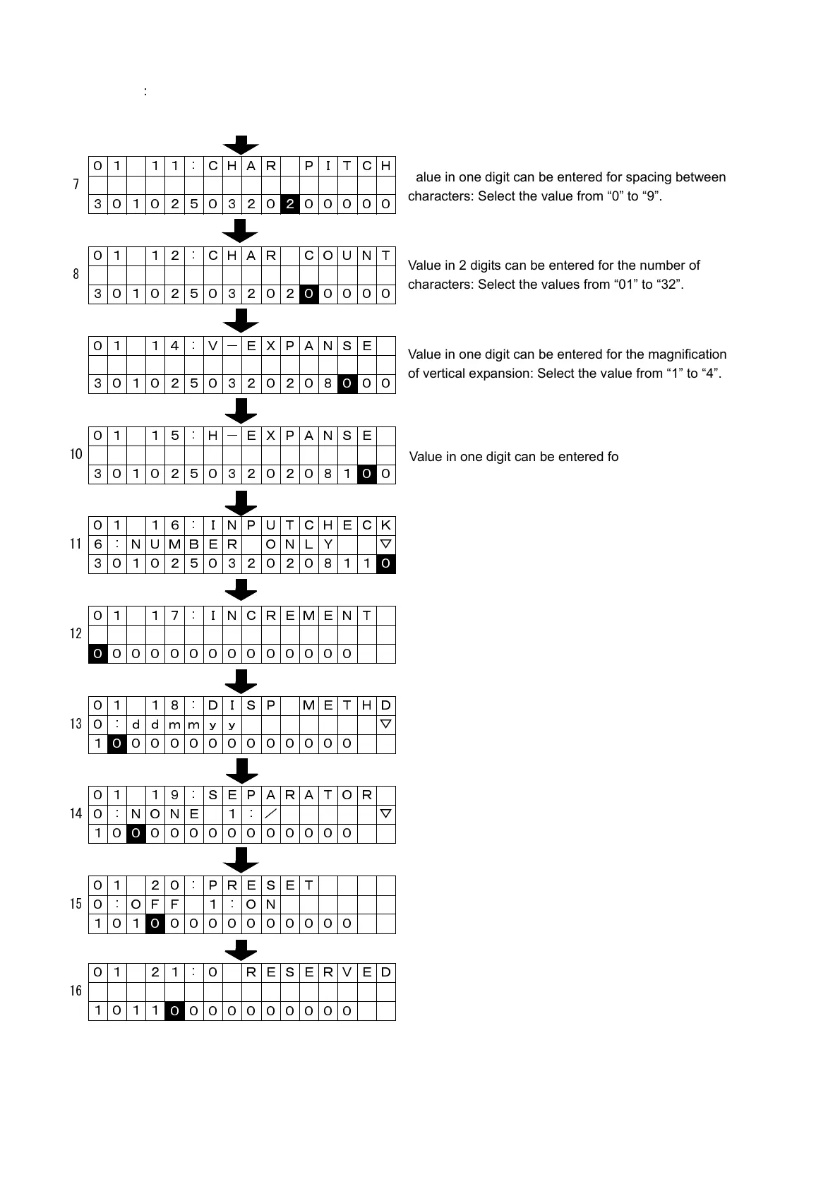 characters: Select the value from “0” to “9”.