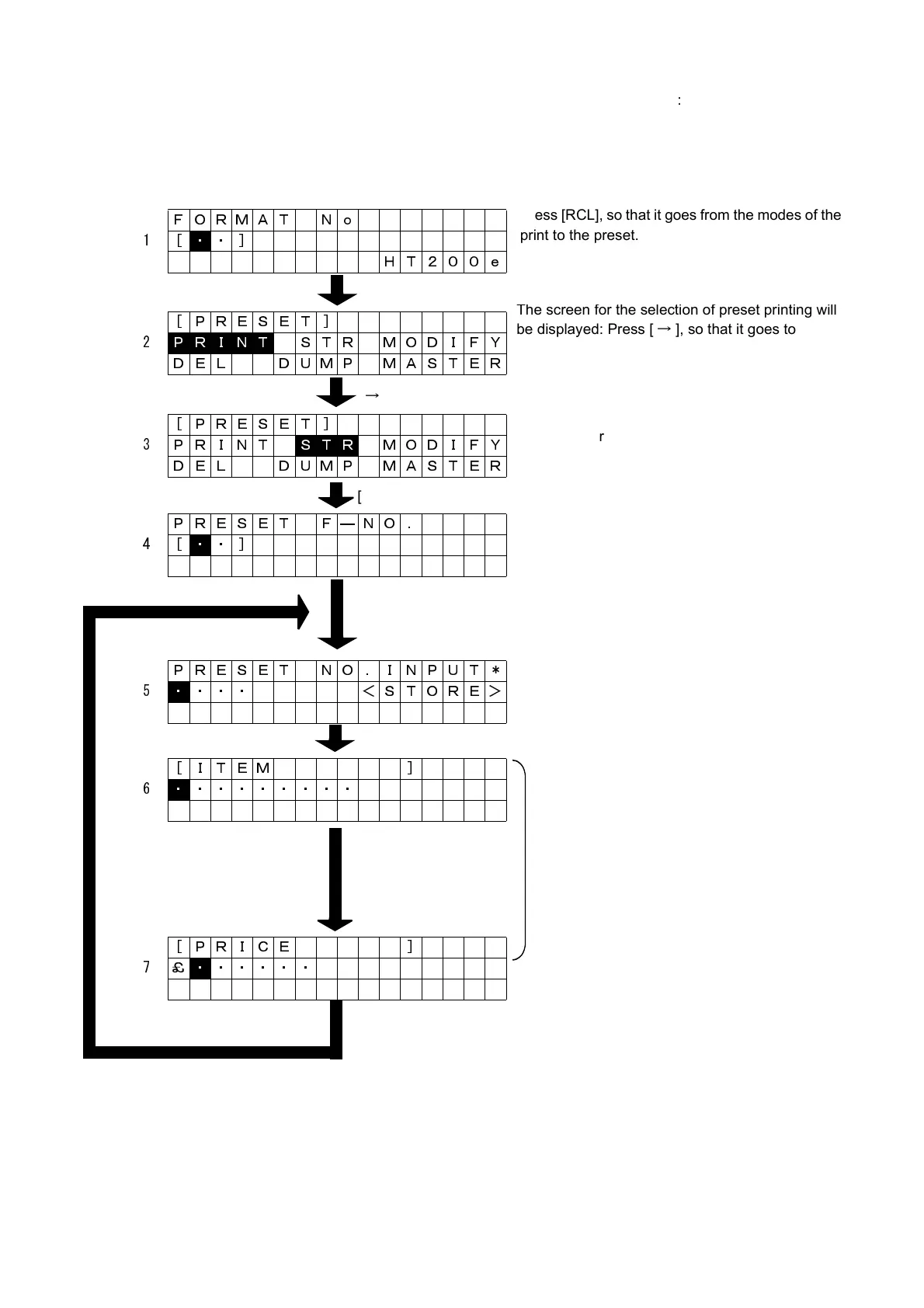 The screen for the selection of preset storing will be