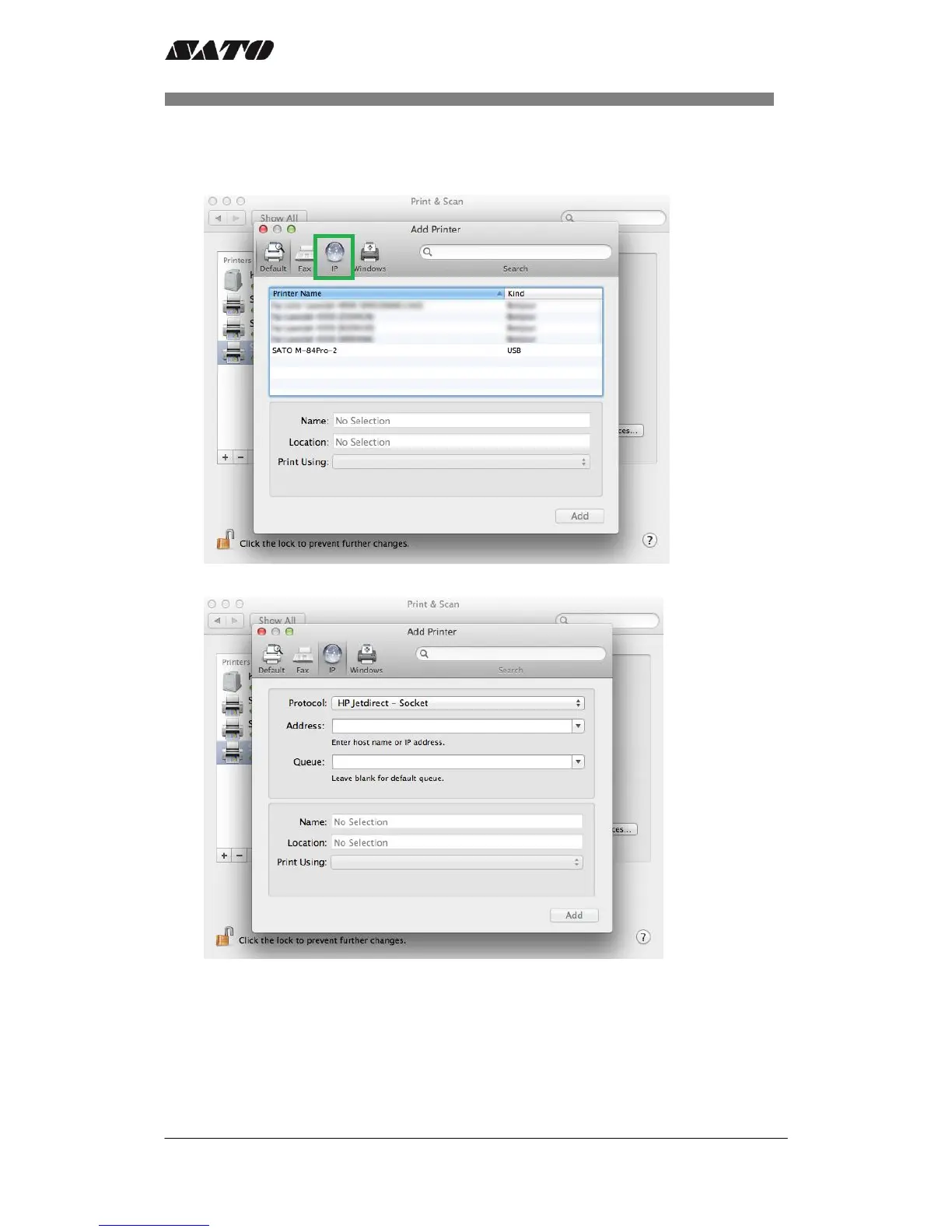 8) If you are adding a printer using the LAN interface, click IP instead of Default on the Add