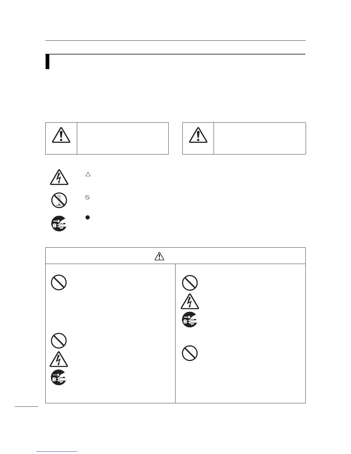 specified warning symbol (for example, the left symbol shows electric shock).