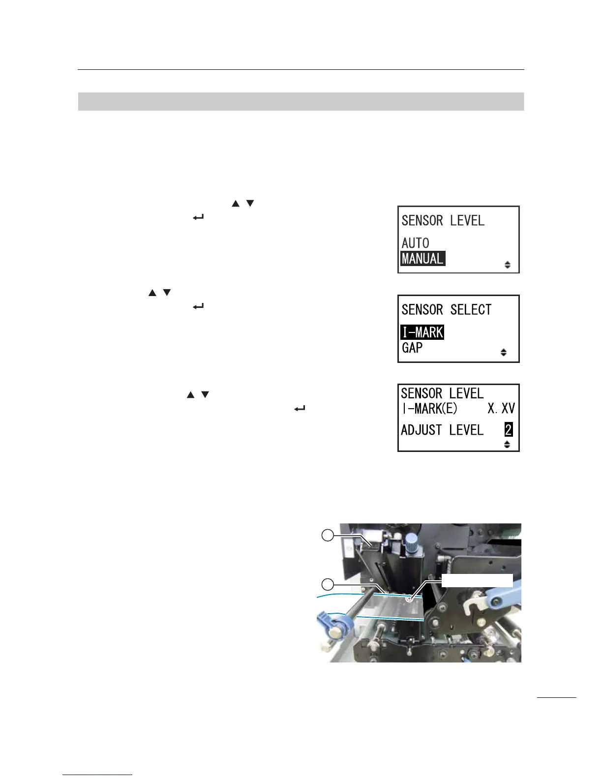 First, adjust the “Low” reception level (voltage) of the I-mark sensor.