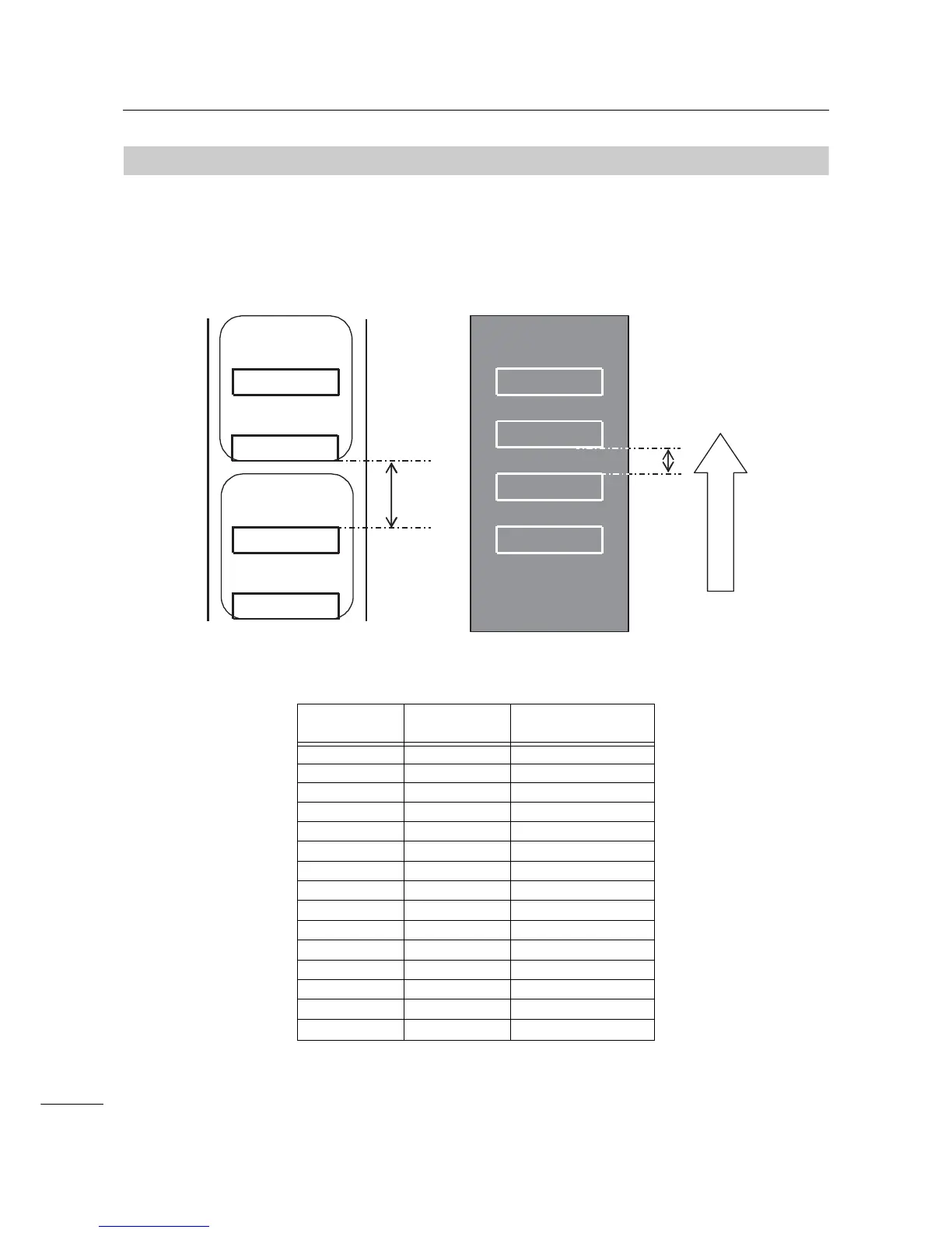 The figure and table below show the minimum distance (A) from the top of the label to the print start