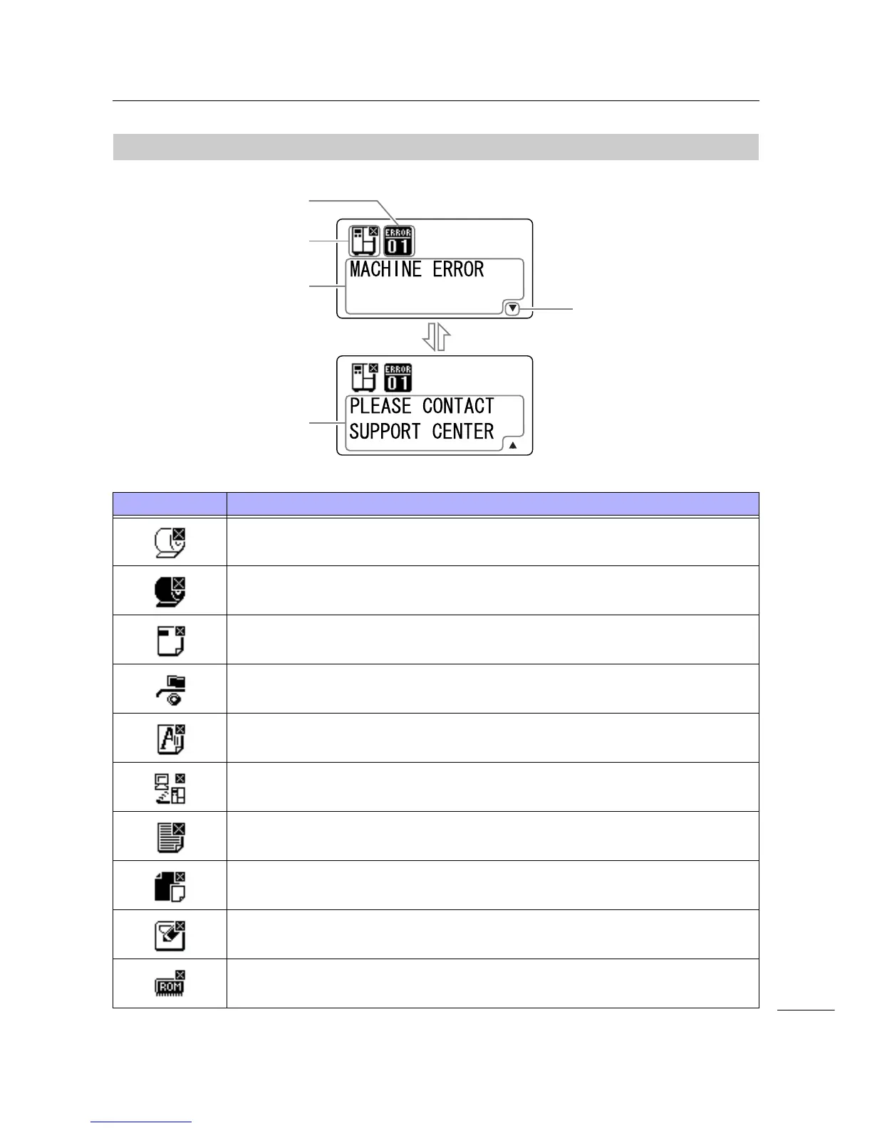 When a printer error occurs, the screen shows the following error messages and icons.