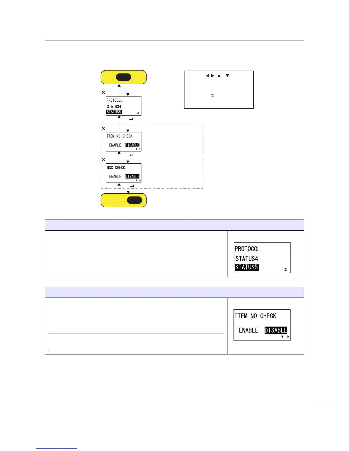 • STATUS5: When selected, the printer will proceed to the ITEM NO.
